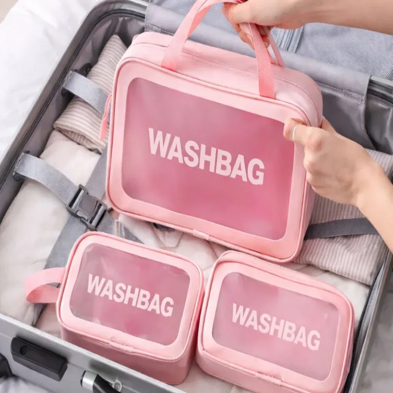 Kosmetyczka podróżna turystyczna zestaw 3w1 przezroczysta na kosmetyki