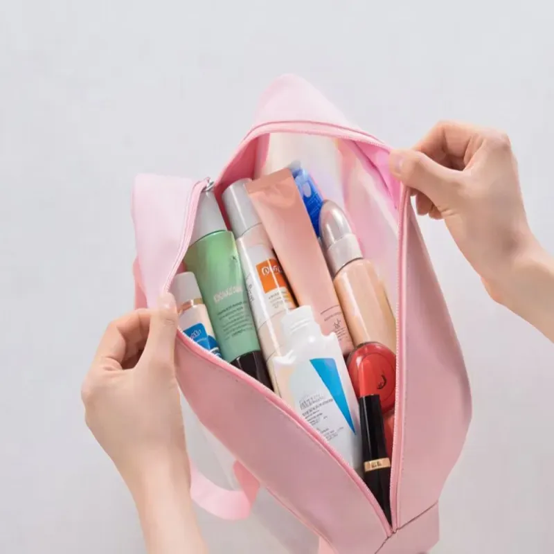 Każda kosmetyczka posiada duży przezroczysty panel z przodu, który umożliwia szybkie sprawdzenie zawartości bez konieczności otwierania. To praktyczne rozwiązanie podczas pakowania oraz na lotnisku.