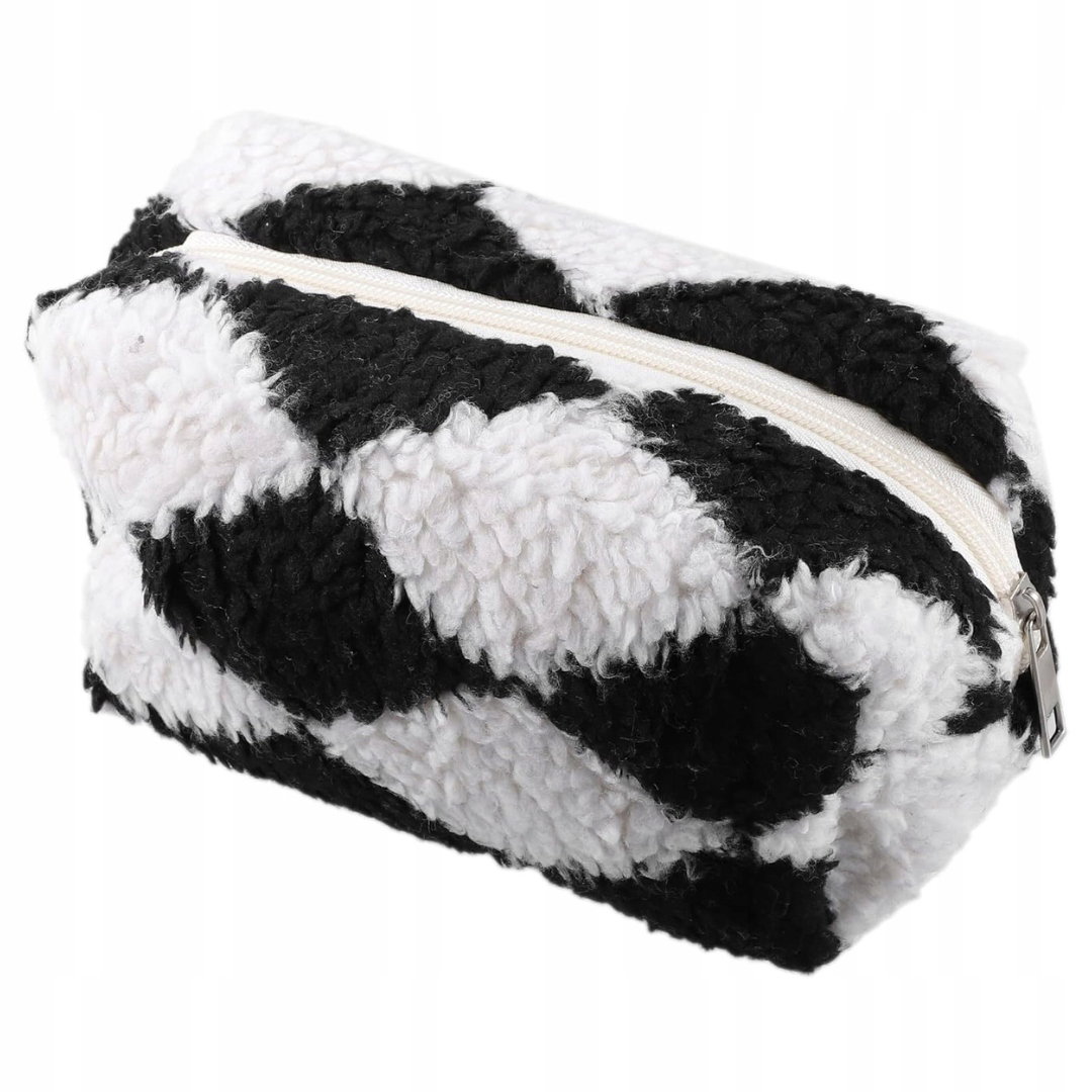VOCOSTE Przenośna kosmetyczka, wzór w szachownicę z tkaniny frotte, czarna