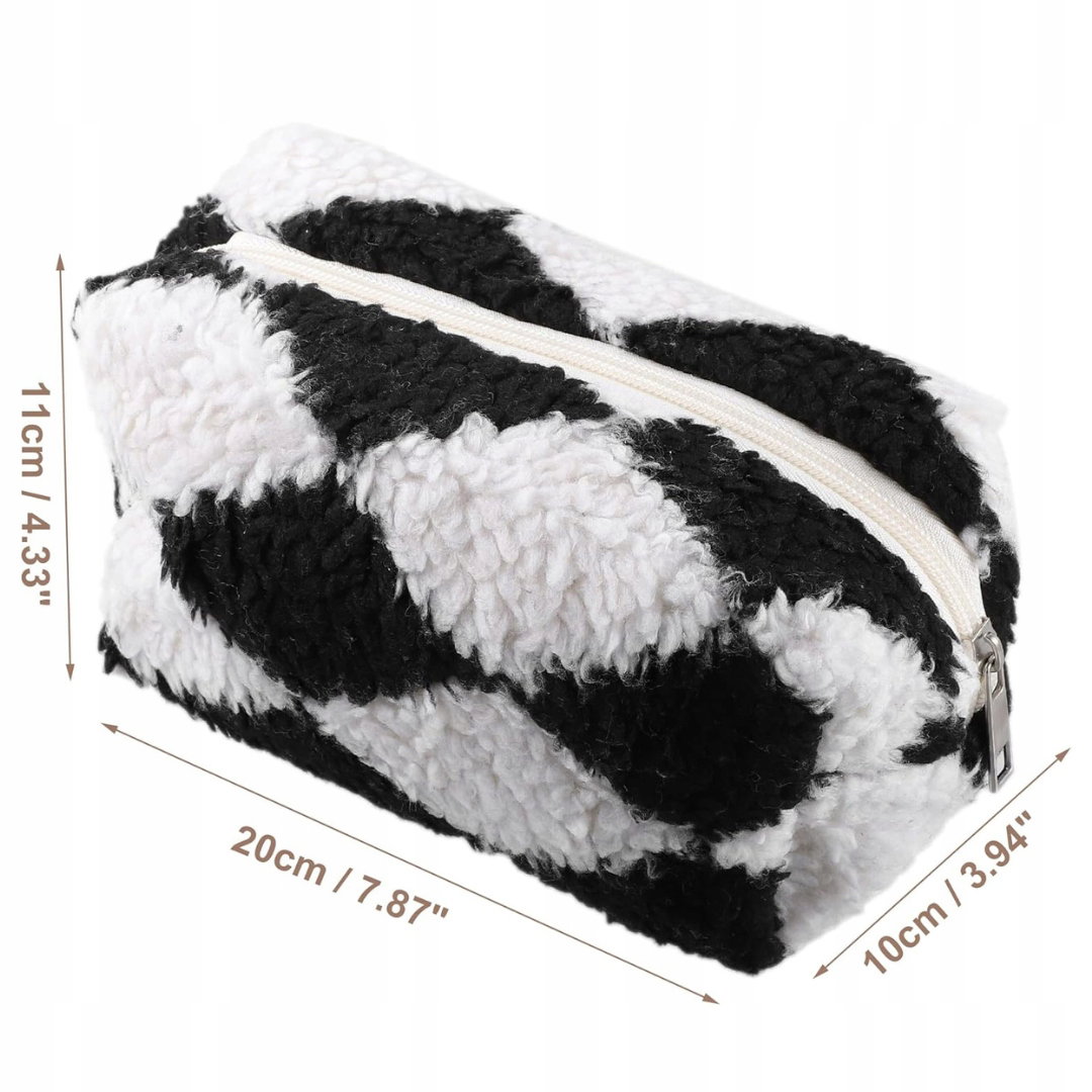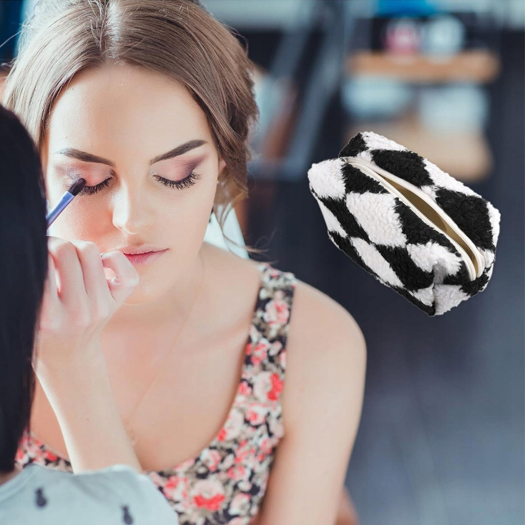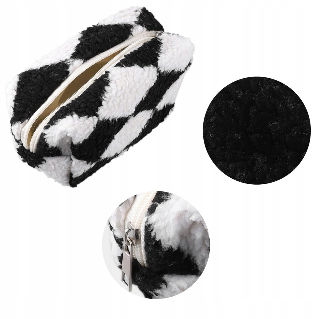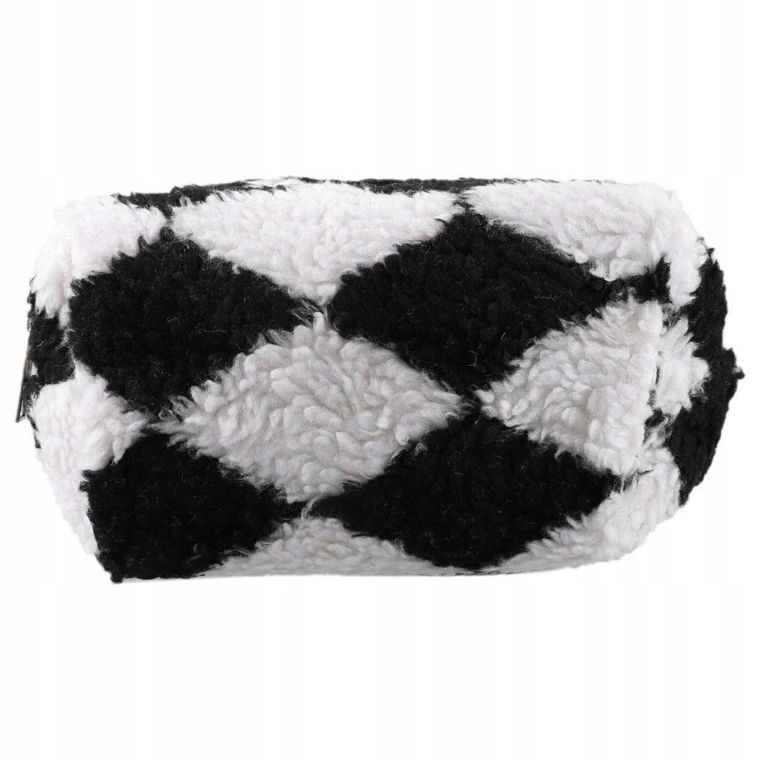 VOCOSTE Przenośna kosmetyczka, wzór w szachownicę z tkaniny frotte, czarna