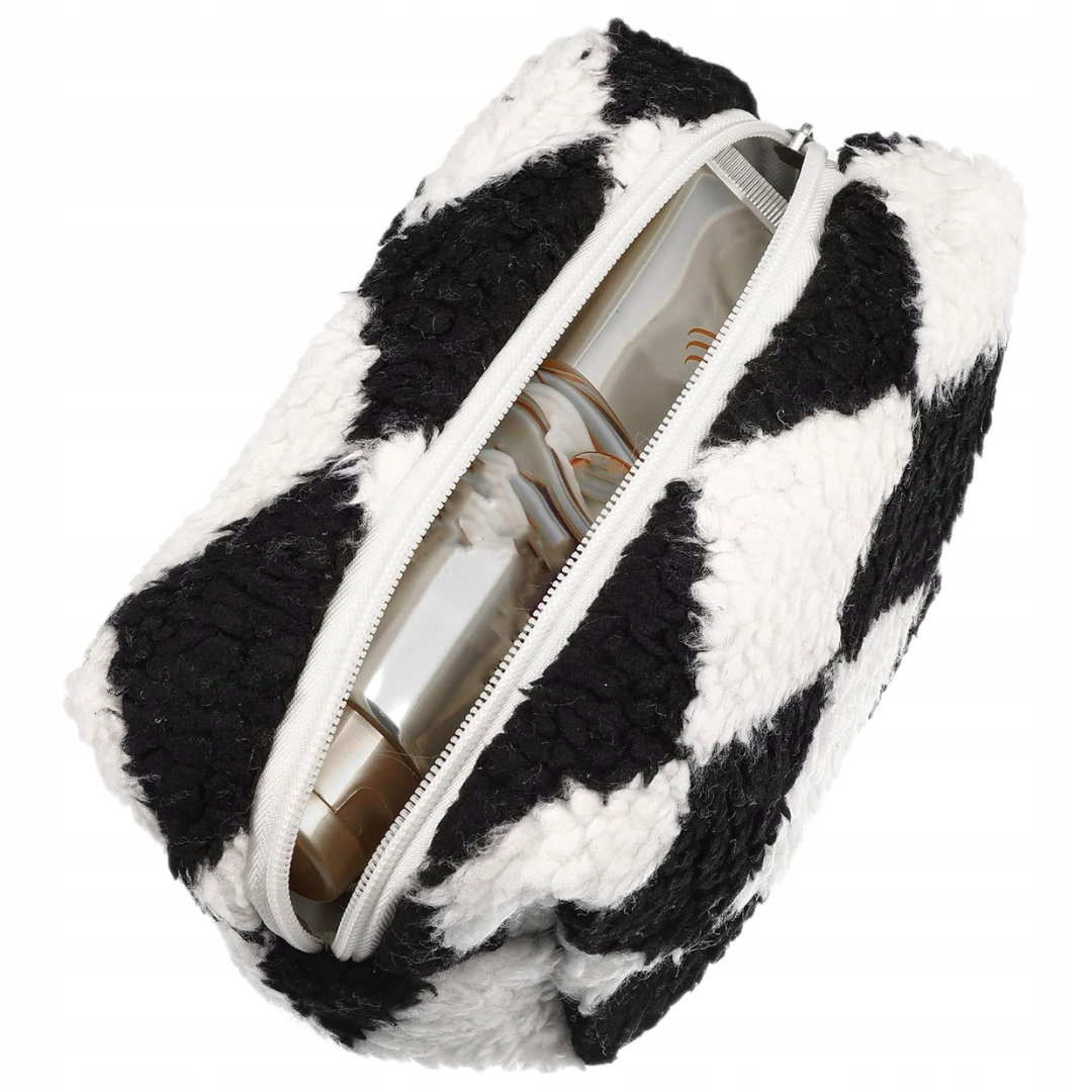 Kosmetyczka VOCOSTE cechuje się miękką strukturą z tkaniny frotte w czarną szachownicę, łączącą nowoczesną estetykę z codzienną użytecznością.