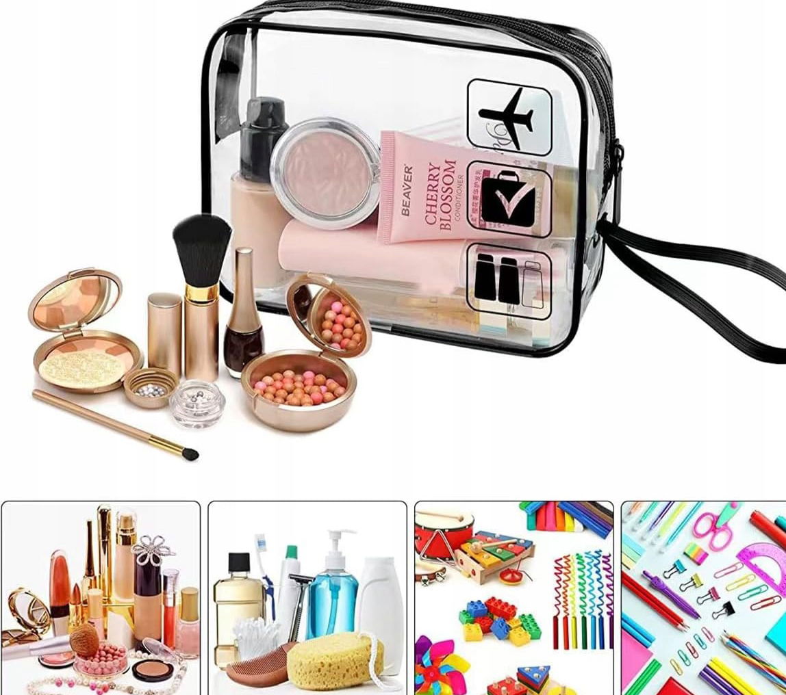 ✅ Bezpieczeństwo i porządek: Dzięki przezroczystej konstrukcji z łatwością znajdziesz każdy kosmetyk bez konieczności przeszukiwania całej zawartości. To idealne rozwiązanie do transportu płynów w bagażu podręcznym na lotnisku.