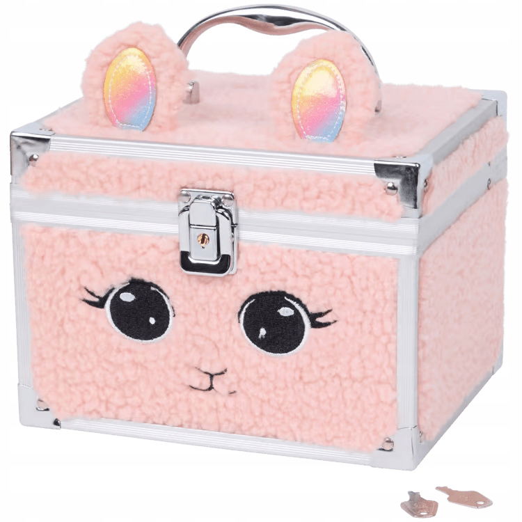 Uroczy futrzany kuferek z paletką do makijażu przeznaczony dla każdej małej dziewczynki lubiącej zabawę z modą, stylizacją, makijażem.
