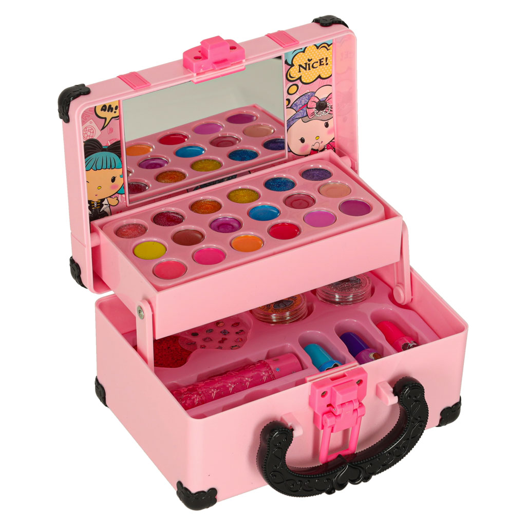 MAKIJAŻOWY ŚWIAT DLA MAŁEJ STYLISTKI - Zestaw do makijażu dla dzieci to prawdziwa gratka dla każdej małej miłośniczki stylizacji. Kolorowe cienie, róże i błyszczyki pozwalają tworzyć własne makijaże, a akcesoria do paznokci dodają blasku każdej zabawie. Wbudowane lusterko umożliwia ćwiczenie samodzielności i wyobraźni.