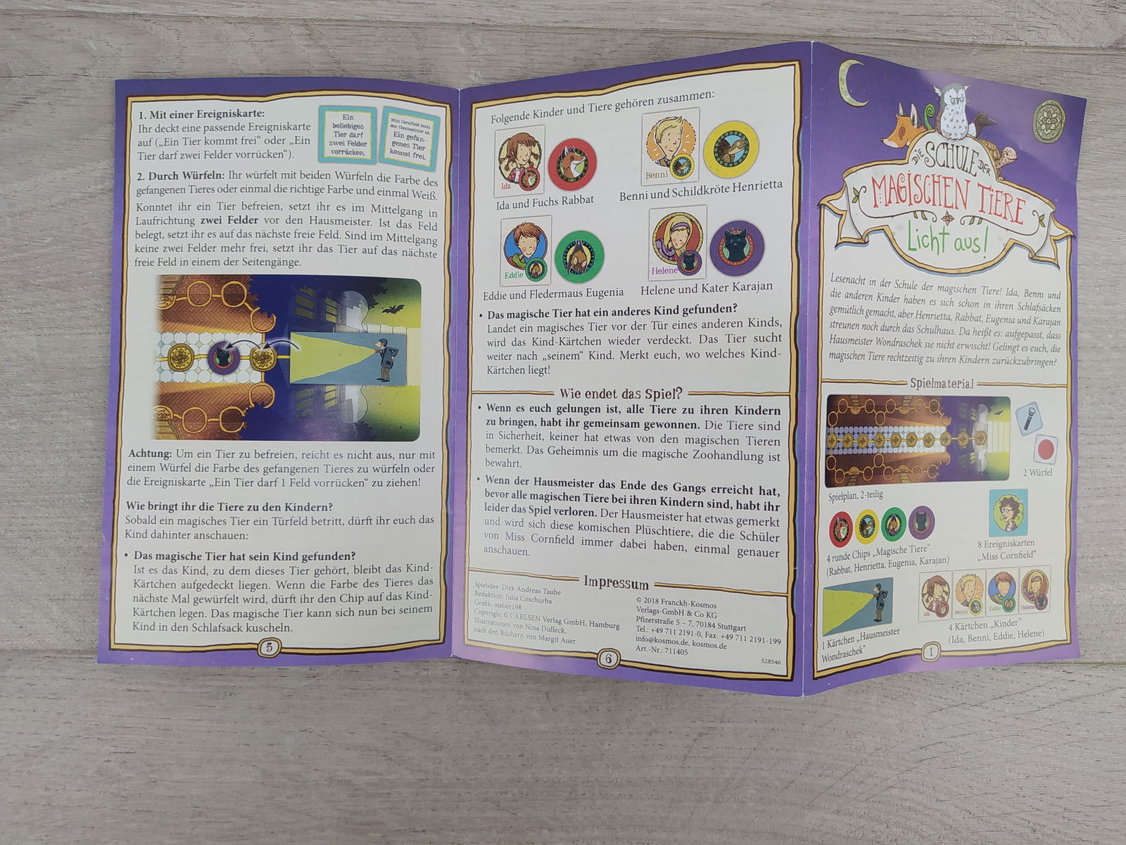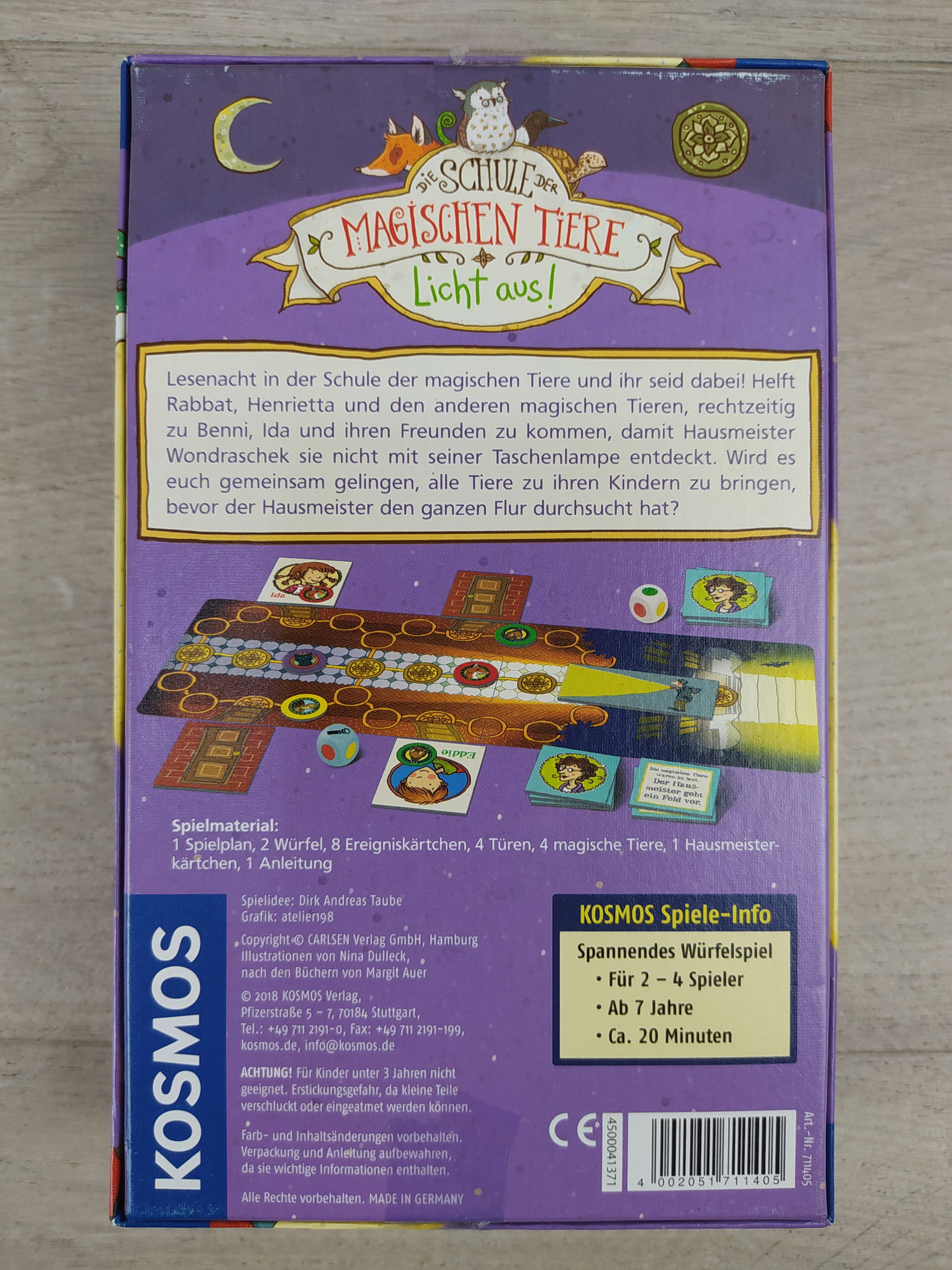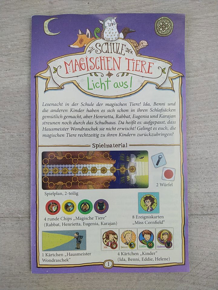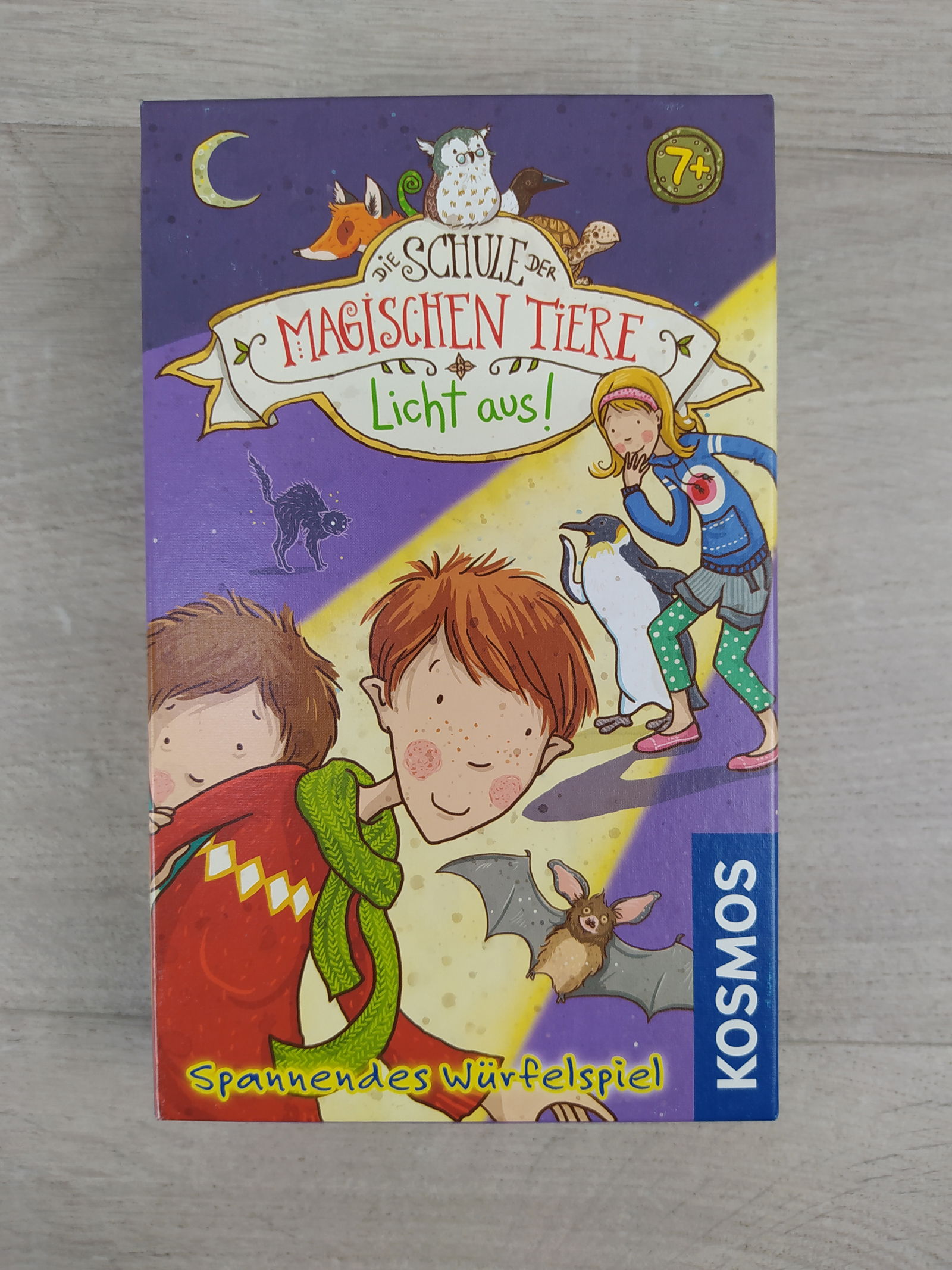 🦊 Szkoła magicznych zwierząt: Zgaś światło! to pełna emocji, kooperacyjna gra kościana od KOSMOS, oparta na popularnej serii książek. Gracze wspólnie pomagają magicznym zwierzętom dotrzeć do swoich dzieci podczas szkolnej nocy czytania — zanim odkryje ich woźny patrolujący korytarz z latarką.