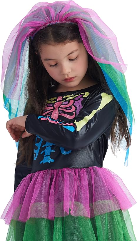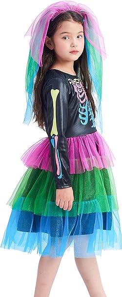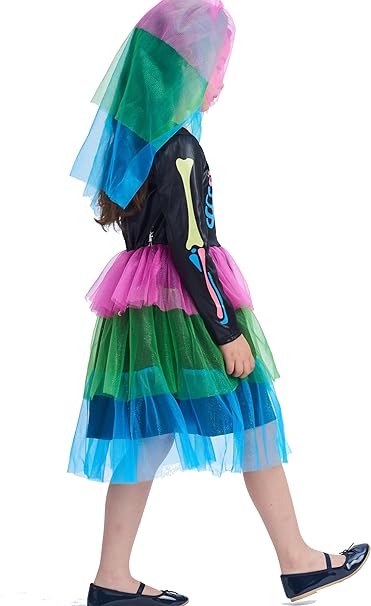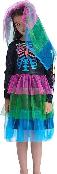 IKALI Dziewczęcy kolorowy kostium szkieletu, kostium na Halloween