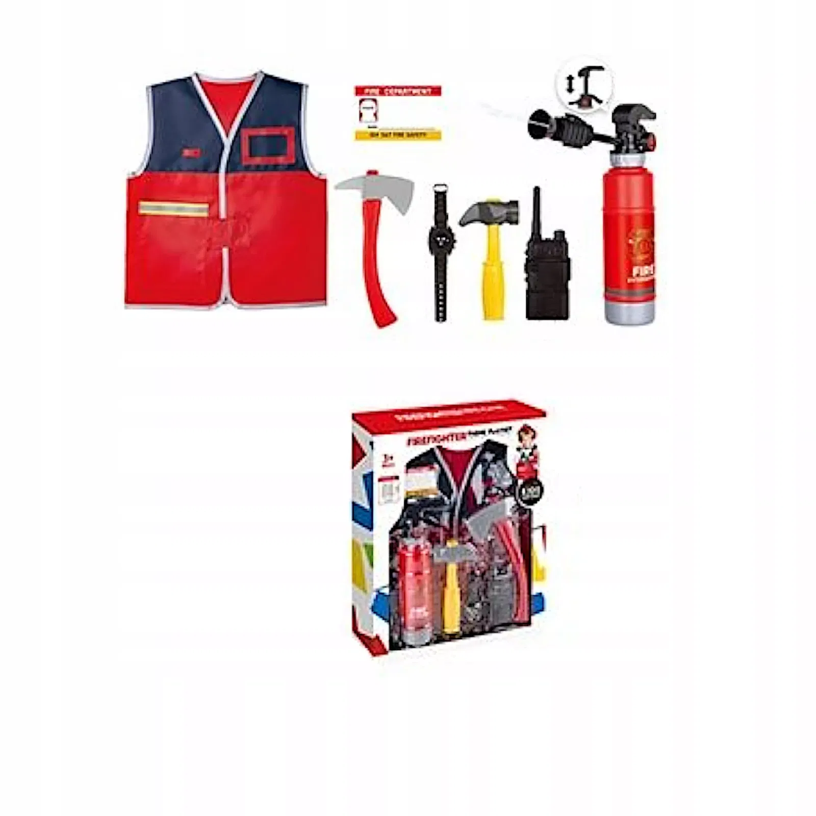 KOSTIUM MAŁEGO STRAŻAKA Z KASKIEM I GAŚNICĄ