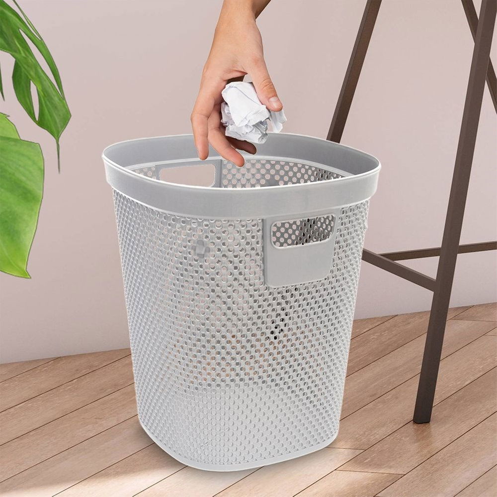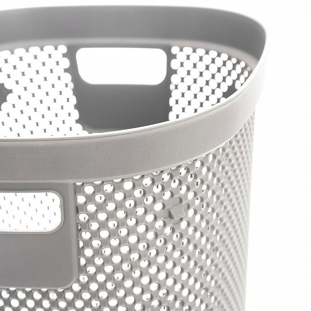 WYTRZYMAŁY - Kosz wykonany z najwyższej jakości tworzywa w kolorze szarym. Kosz posiada otwory, dzięki czemu jest przewiewny.
