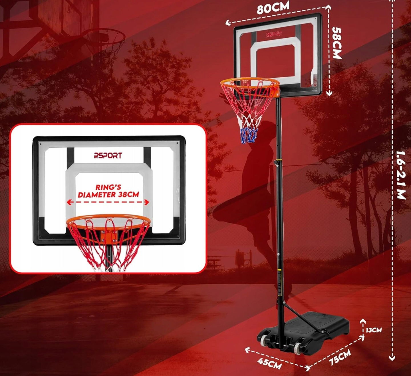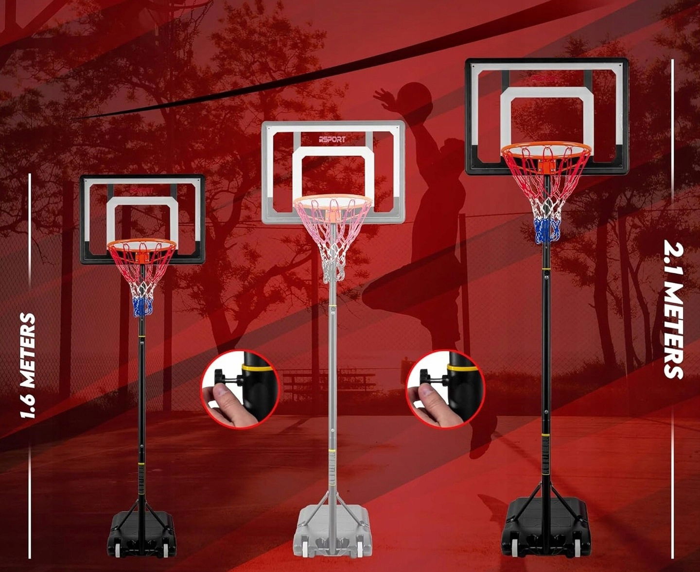 - Regulowana wysokość obręczy: Od 1,6 m do 2,1 m