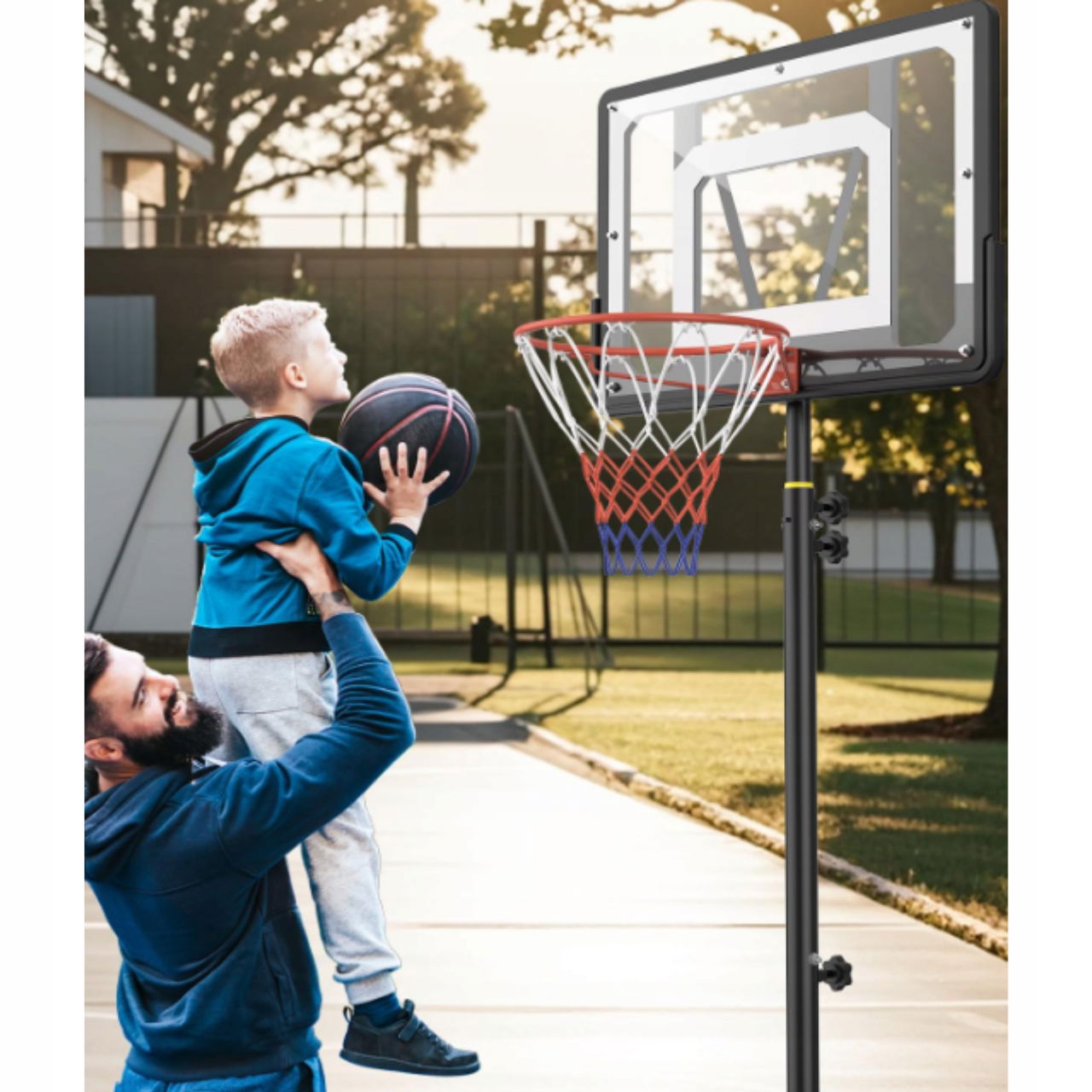 Profesjonalny system kosza do koszykówki do użytku wewnątrz i na zewnątrz, idealny dla dzieci, nastolatków i młodzieży. Wyposażony w regulowaną wysokość od 155 do 210 cm , solidną 33-calową tablicę odporną na stłuczenie oraz stojak z kółkami dla łatwego przemieszczania. Doskonały wybór dla początkujących graczy oraz młodych pasjonatów koszykówki.