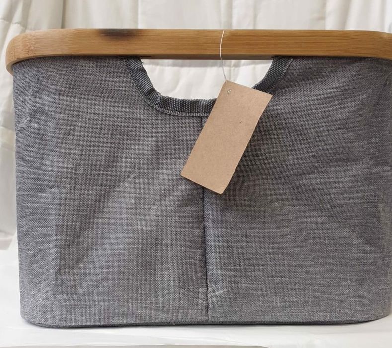 Kosz do przechowywania 30x30 bambusowa rama szary