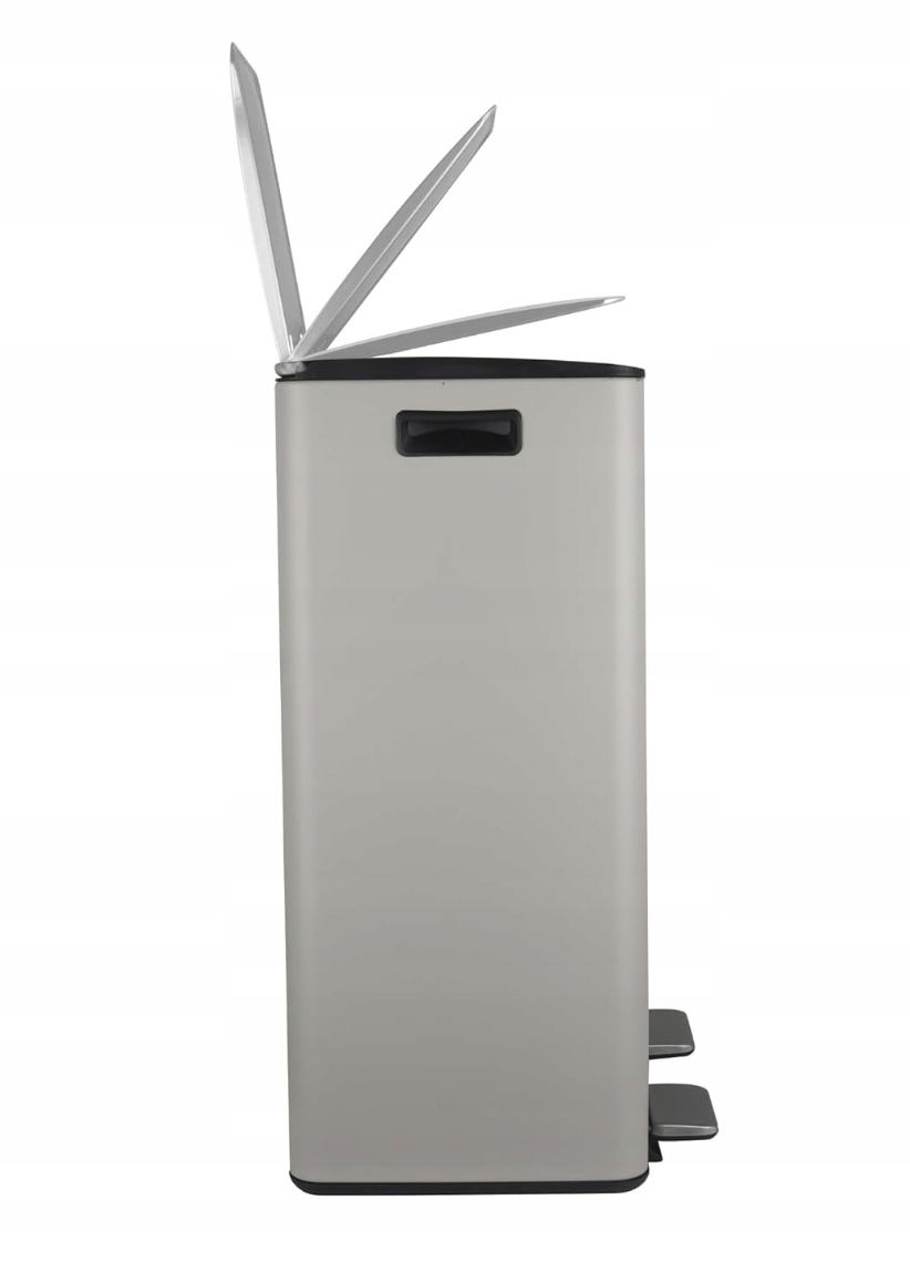 Wyjmowane wewnętrzne wiadra ułatwiają opróżnianie i czyszczenie, a przemyślana konstrukcja zapewnia komfortowy dostęp do obu przegródek.