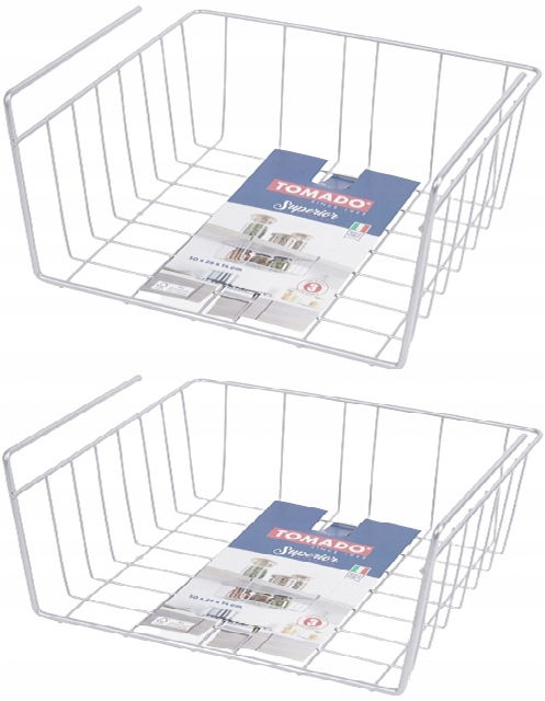 KOSZ KOSZYK METALOWY PODWIESZANY ORGANIZER POD PÓŁKĘ 30x26x14CM SZARY 2 szt