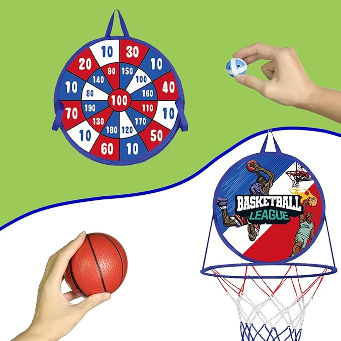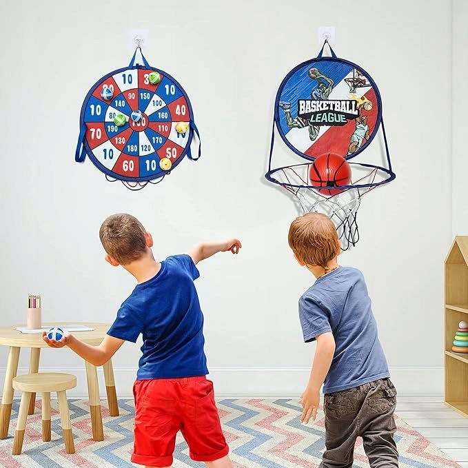 Miniaturowy kosz do koszykówki z tarczą do rzutek to doskonały wybór na rozweselenie dzieci! Dzięki tej grze, dzieci rozweselają się, ćwiczą koordynację, umiejętności motoryczne i współpracę, a także spędzają czas z rówieśnikami lub rodziną. Idealny prezent na urodziny, Dzień Dziecka czy święta!