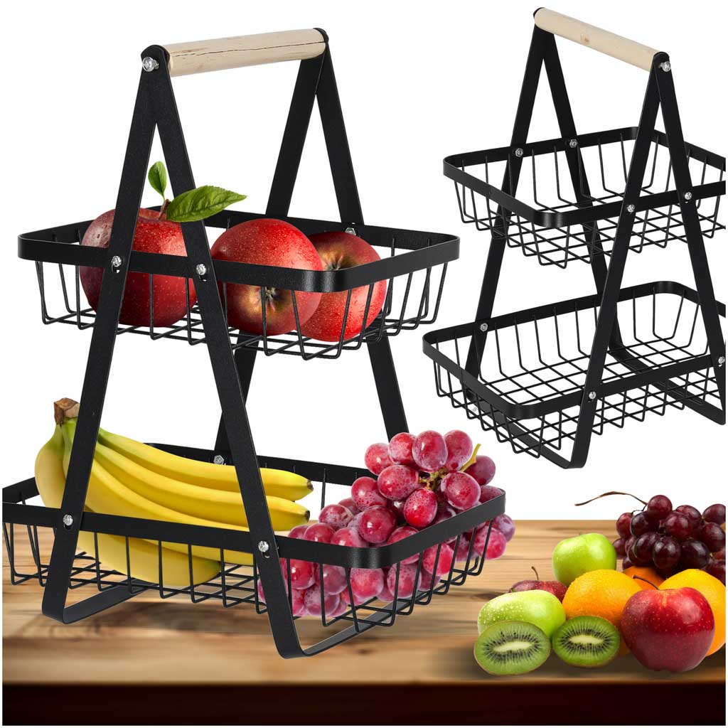 Kosz na Owoce Warzywa Dwupoziomowy Ozdobny Metalowy Pojemnik Patera Loft