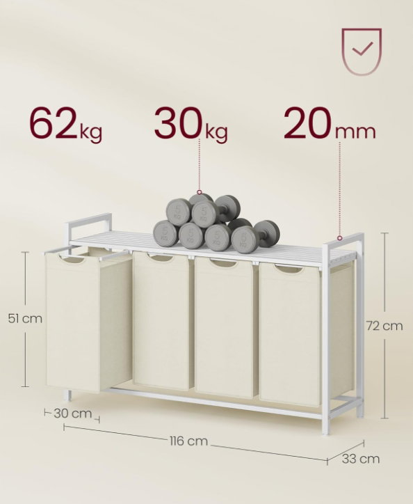 Kosz na pranie, 4 x 40 l, 116 x 33 x 72 cm VASAGLE BLH401W01