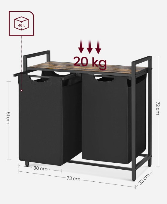 - ✴️[Wytrzymały, stabilny i trwały] Solidne rury stalowe 2 x 2 cm, wysokiej jakości płyta MDF – pojemnik na pranie jest wytrzymały i wytrzymały (półka do 20 kg). Torba jest wykonana z wodoodpornej tkaniny Oxford. 4 regulowane nóżki zwiększają stabilność