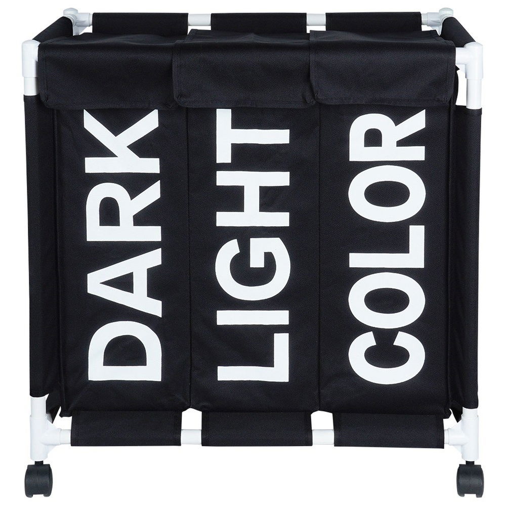 TRZY KOMORY NA PRANIE - Kosz tworzą trzy oddzielne komory, które zapewnią wygodne segregowanie odzieży do prania. Dla ułatwienia sortowania ubrań, kosz posiada napisy: dark, light i color, co ułatwi selekcję brudnych ubrań.