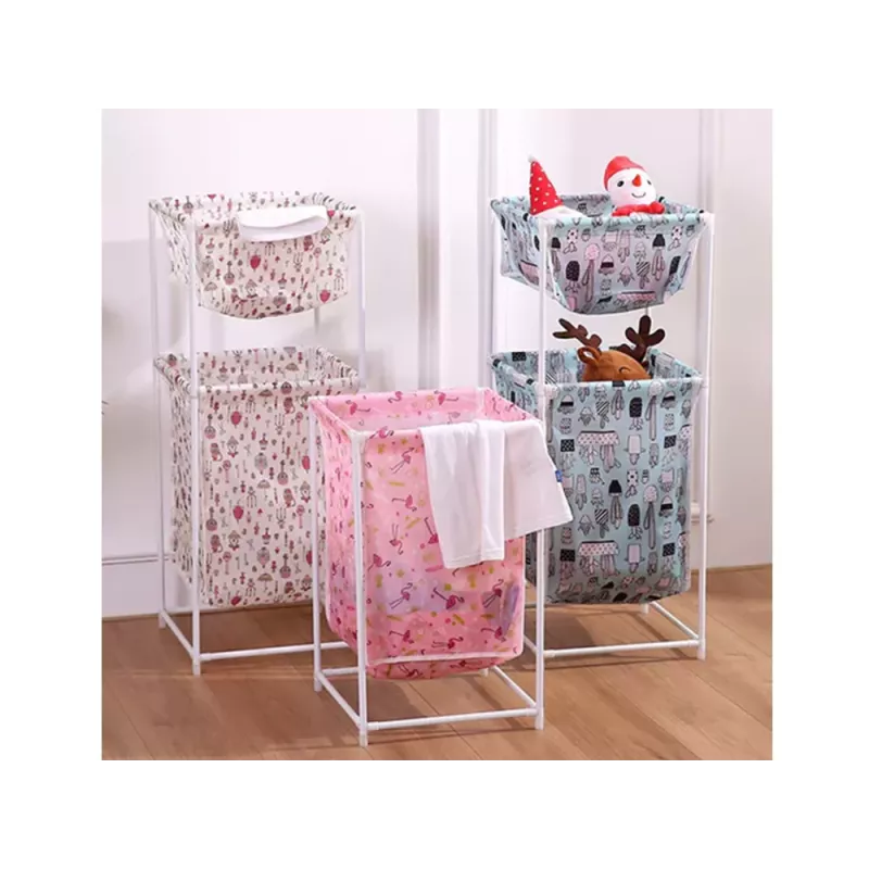 Stojak posiada stabilną konstrukcję, można go używać w dwóch wariantach: z półką na górze lub pojedynczy duży kosz.