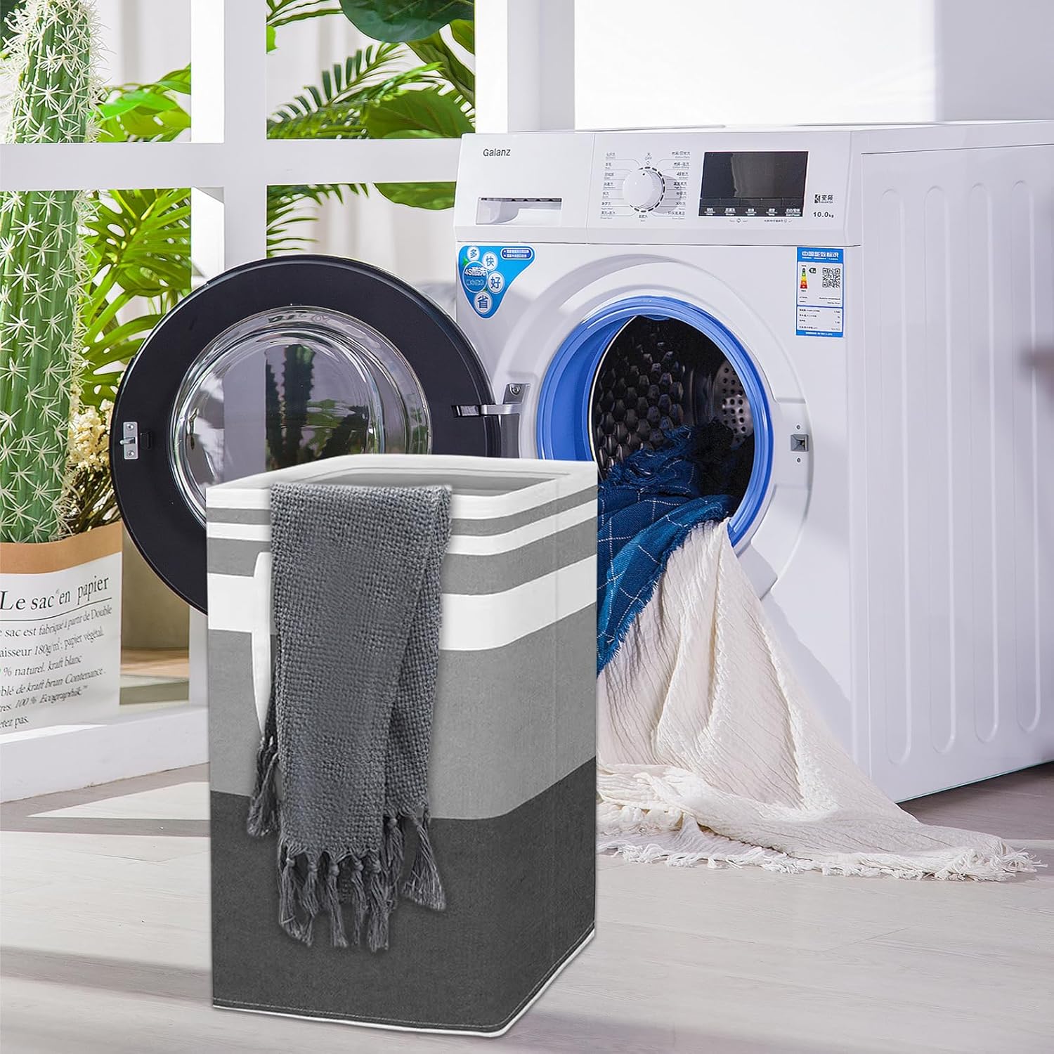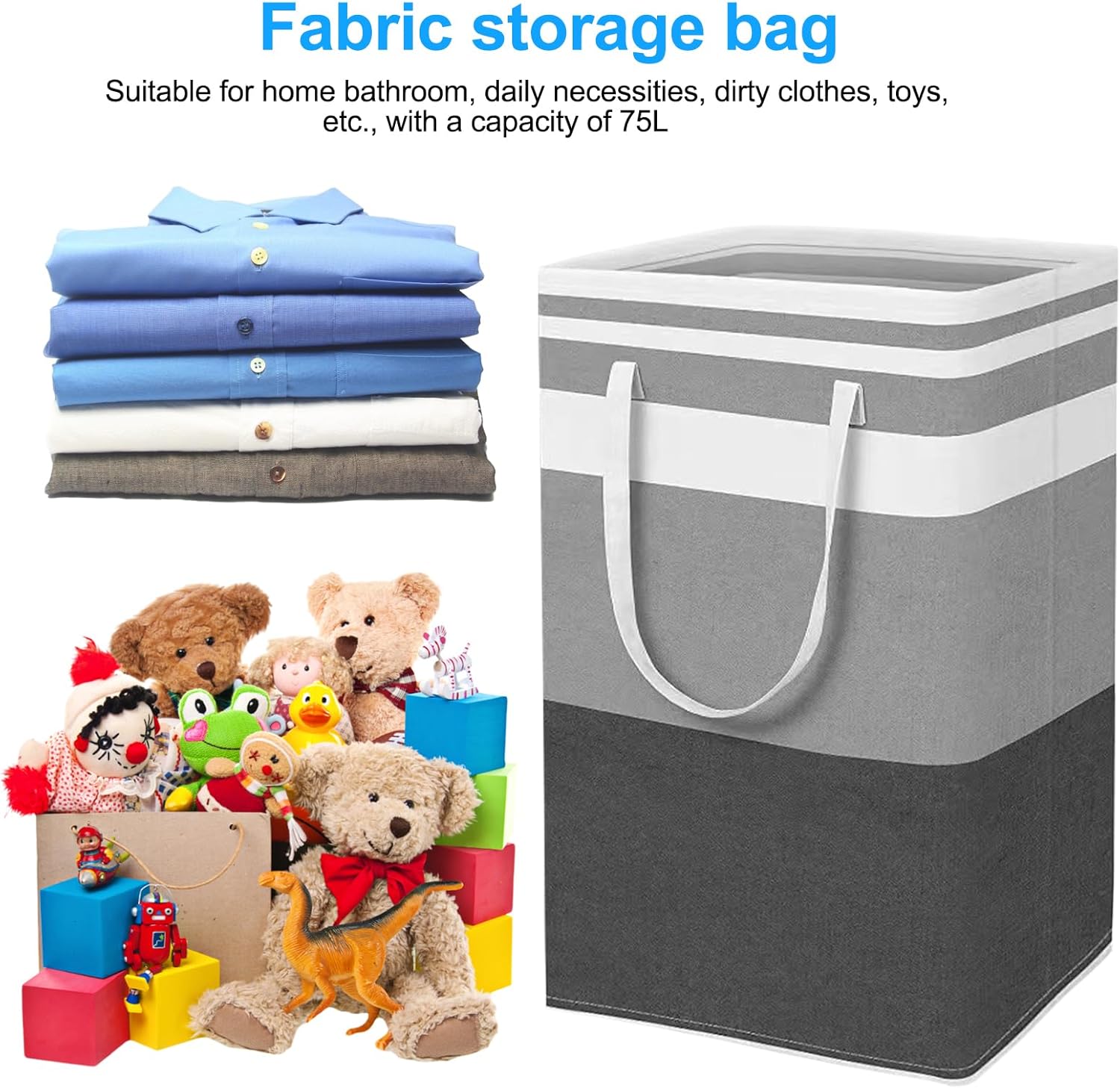 Duży kosz na pranie z bawełny i lnu to idealne rozwiązanie na przechowywanie ubrań i innych przedmiotów. Z pojemnością 75 litrów, pomieści wszystko, czego potrzebujesz, od brudnych ubrań po ręczniki i zabawki.