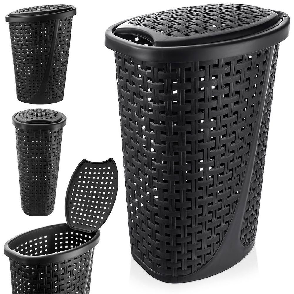 Pojemny kosz na pranie posiadający otwieraną pokrywę. Kosz prezentuje się bardzo efektownie dzięki wykonaniu z wytrzymałego tworzywa. Czarny kolor i klasyczny wzór sprawią, że kosz będzie pięknie prezentował się w każdym wnętrzu. Kosz na pranie jest niezbędnym w każdej łazience. Z jego pomocą utrzymamy porządek i będziemy mieć stałe miejsce do przechowywania odzieży i bielizny do prania.