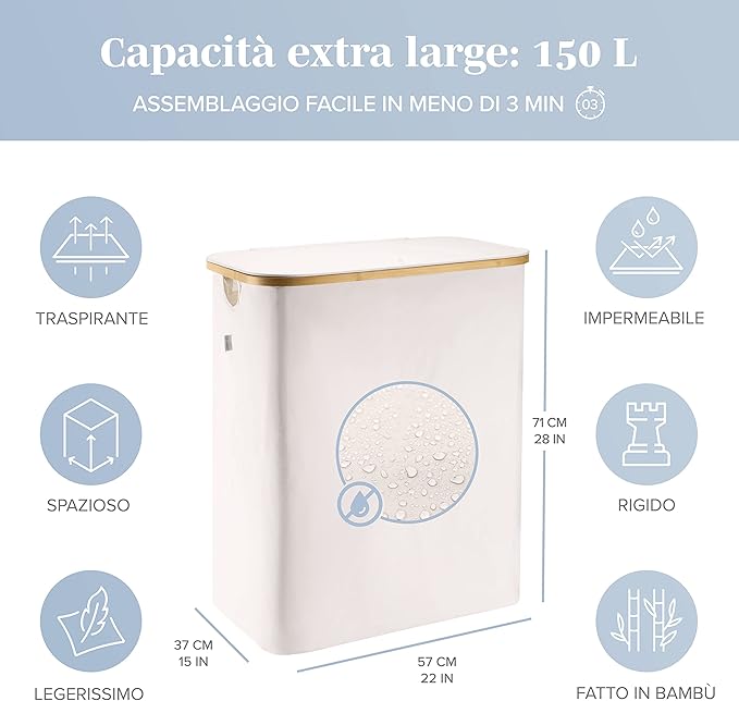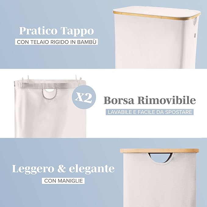 - 【Wykonane z bambusa】Większość koszy na pranie wykonana jest z materiałów podatnych na pleśń i nieprzyjemne zapachy. Nasz kosz na pranie w łazience wykonany jest z wysokiej jakości, oddychających materiałów, które sprawiają, że w domu panuje świeży zapach. Drewniane części oszczędzającego miejsce kosza na pranie z pokrywką wykonane są z bambusa. Ten kosz na pranie prezentuje się elegancko zarówno w sypialni, łazience jak i szafie. Dostępne w 4 kolorach!
