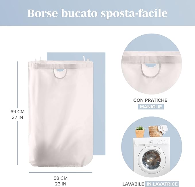 - 【Praktyczna konstrukcja】Koniec z ciąganiem całego kosza na brudną bieliznę z łazienki do pralni! Unikalna konstrukcja tego kosza na pranie obejmuje dwie duże wewnętrzne torby. Można je łatwo zdejmować, co zapewnia większą wygodę. Organizer łazienkowy wykonany jest z wysokiej jakości materiału, który można prać w pralce. Utrzymuj pranie w czystości i świeży zapach w pokoju.
