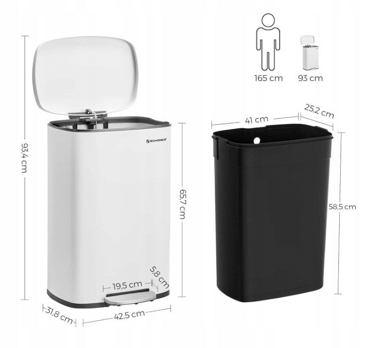 Kosz na śmieci, 50 litrów SONGMICS LTB101W01V1 POWYSTAWOWY WGNIOTKI