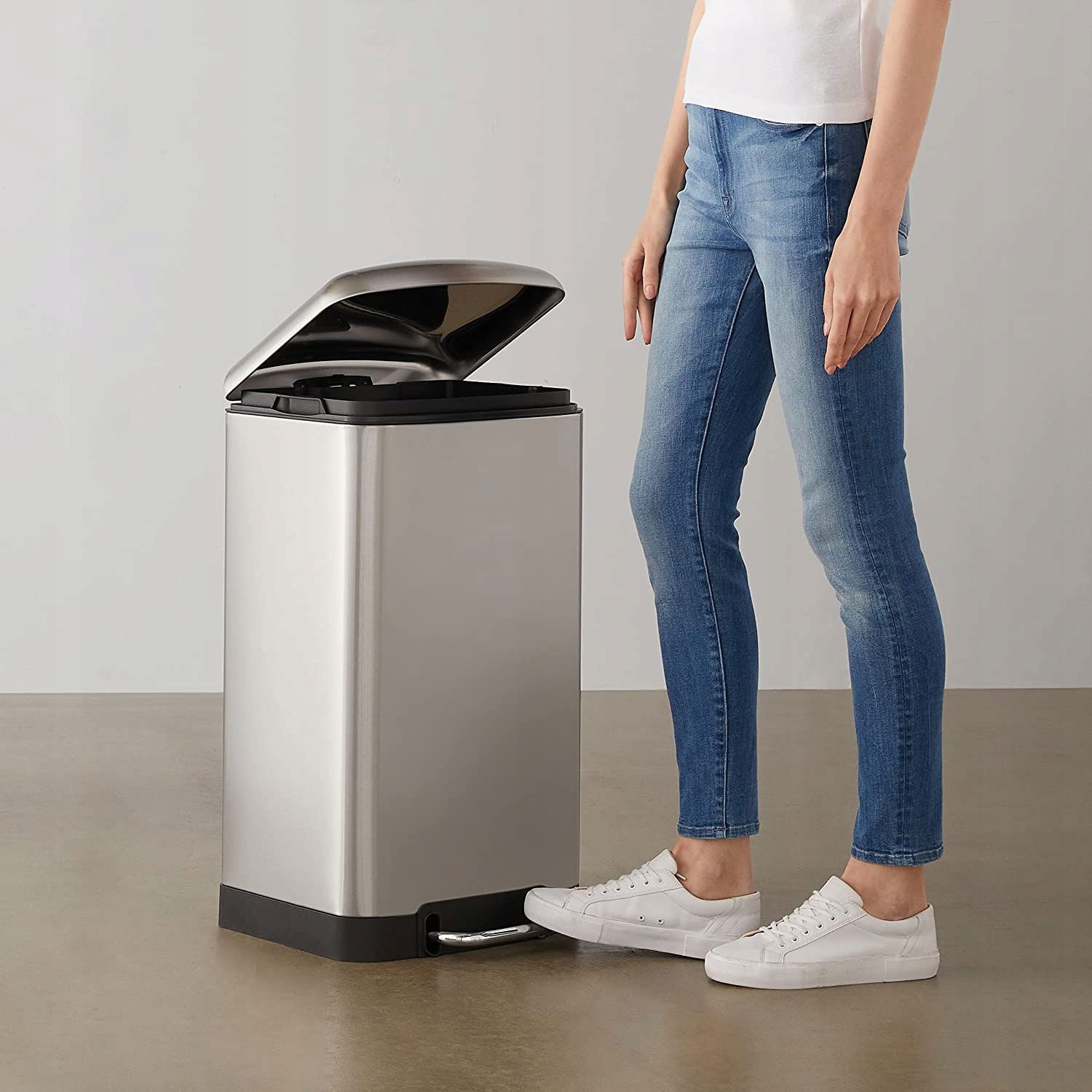 Kosz Na Śmieci Amazon Basics 30L Pedał Cichy Dom Biuro Nikiel Satyna