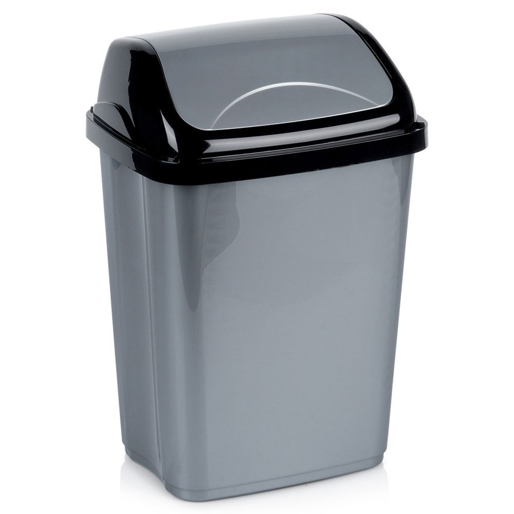 Odporny i wytrzymały - Wykonany z najwyższej jakości tworzywa w szarym, błyszczącym kolorze z czarnym wykończeniem pokrywy. Kosz jest wytrzymały, a zarazem lekki.