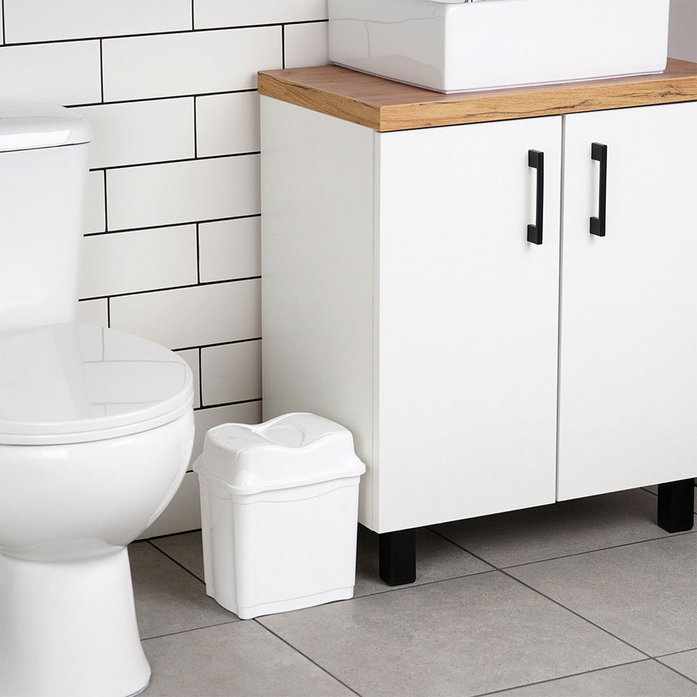 Praktyczny, uchylny kosz na śmieci, wykonany z wytrzymałych materiałów. Doskonale sprawdzi się jako pojemnik na drobne odpady. Pomoże w utrzymaniu czystości zarówno w łazience czy kuchni, jak i wszędzie tam, gdzie będzie to potrzebne. Kosz na odpady utrzymany w klasycznym stylu, będzie dobrze komponować się z różnymi stylami wnętrz. Kosz jest stabilny i wygodny w użytkowaniu, a uchylna pokrywa ułatwi korzystanie z kosza.