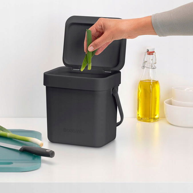 Brabantia Sort & Go o pojemności 3 litrów to praktyczny i kompaktowy kosz idealny do odpadów organicznych. Dzięki niewielkim wymiarom możesz postawić go na kuchennym blacie lub schować w szufladzie. Solidny uchwyt ułatwia przenoszenie, a minimalistyczny design w szarym kolorze pasuje do każdej kuchni.