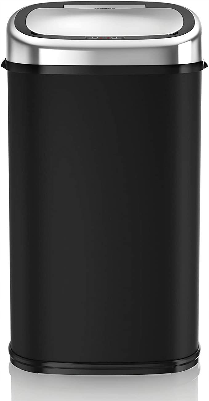 Kosz z czujnikiem Tower T80900 ze stali nierdzewnej z automatycznym miękkim zamykaniem i sterowaniem ręcznym, 58 l, czarny