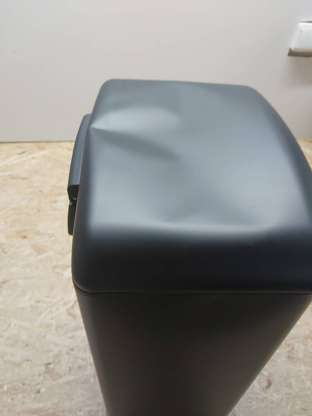 KOSZ POSIADA PĘKNIĘCIE (UŁAMANY PLASTIK), WIDOCZNE NA ZDJĘCIU ORAZ WGNIECONĄ KLAPĘ.