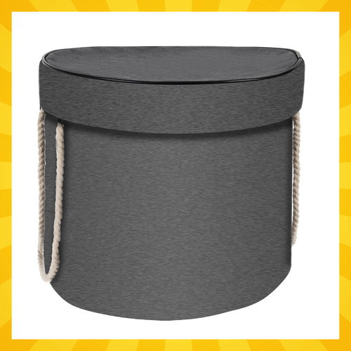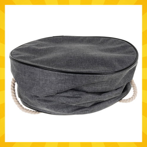- SPECYFIKACJA - materiał: poszycie zewnętrzne: tkanina oxford, poszycie wewnętrzne: PVC, pozostałe: bawełna + żelazo + PP) z matą (tkanina oxford); kolor kosza: szary; kolor maty: żółty/czarny; wymiary kosza: średnica: 31 cm; wysokość: 27 cm; pojemność kosza: 20l; średnica maty: 135 cm; średnica z rantem maty: 150 cm; wysokość rantu: 6,5 cm; waga: 507g; waga w opakowaniu: 508g.