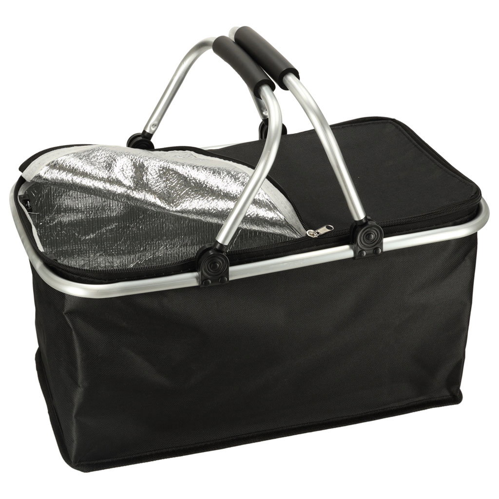 Kosz Piknikowy Termiczny Składany Organizer Czarny Turystyczny Koszyk 32L