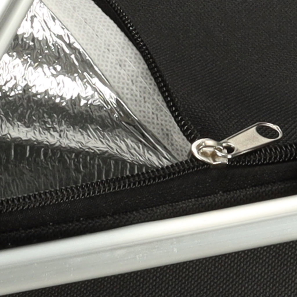 BEZPIECZEŃSTWO I HIGIENA NA PIERWSZYM MIEJSCU - Dzięki grubej tkaninie i warstwie folii aluminiowej, kosz zapewnia skuteczną izolację od warunków zewnętrznych. Jednocześnie jest łatwy w czyszczeniu – wystarczy przetrzeć go wilgotną szmatką, by znów był gotowy do użycia. Stabilna konstrukcja chroni produkty przed zgnieceniem, a wszystko pozostaje dokładnie na swoim miejscu.
