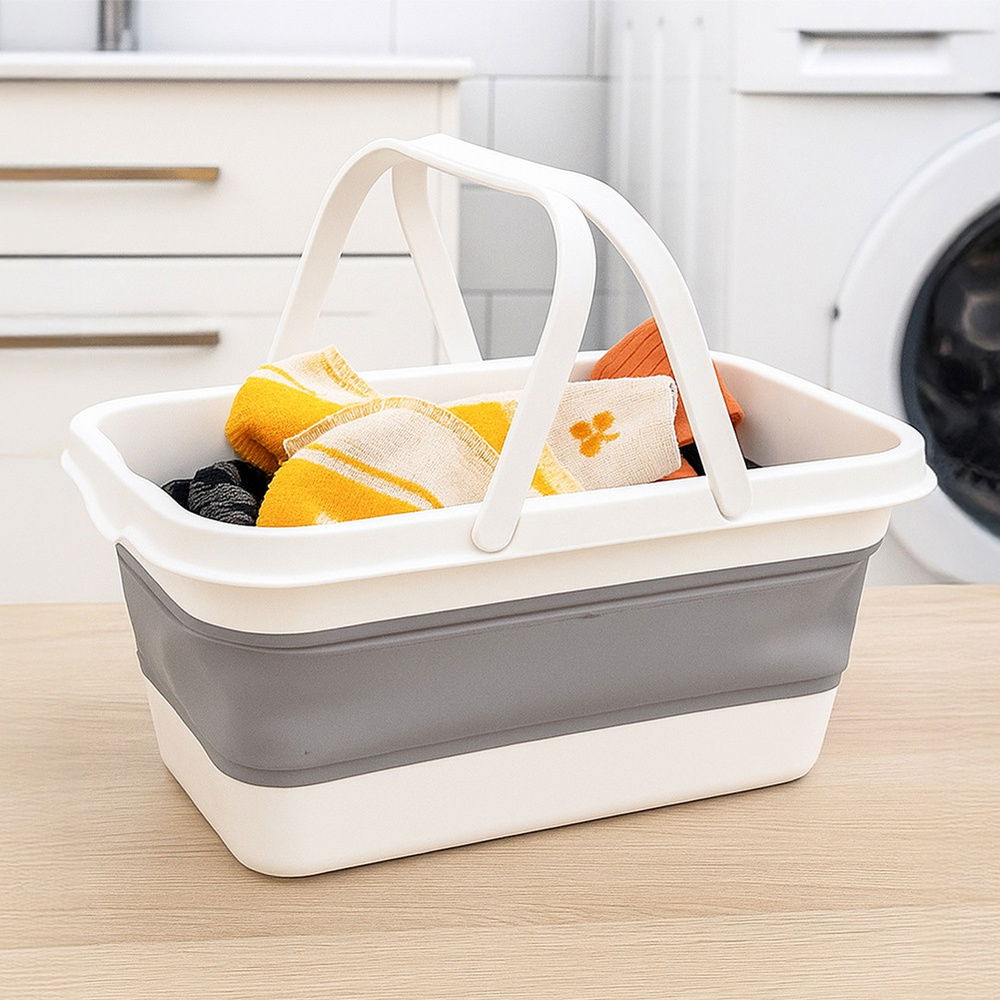 Składany kosz na pranie - Praktyczny kosz o pojemności 28 litrów ze wzmocnionym dnem. Dzięki możliwości złożenia kosza na płasko, przechowywanie go jest bardzo proste. System składania i rozkładania jest bardzo łatwy. Sprawdzi się w domu, na działce, w samochodzie czy podczas wyjazdów. Kosz ma wymiary po złożeniu 47 x 28 x 7,5 cm, a po rozłożeniu 47 x 28 x 21 cm.