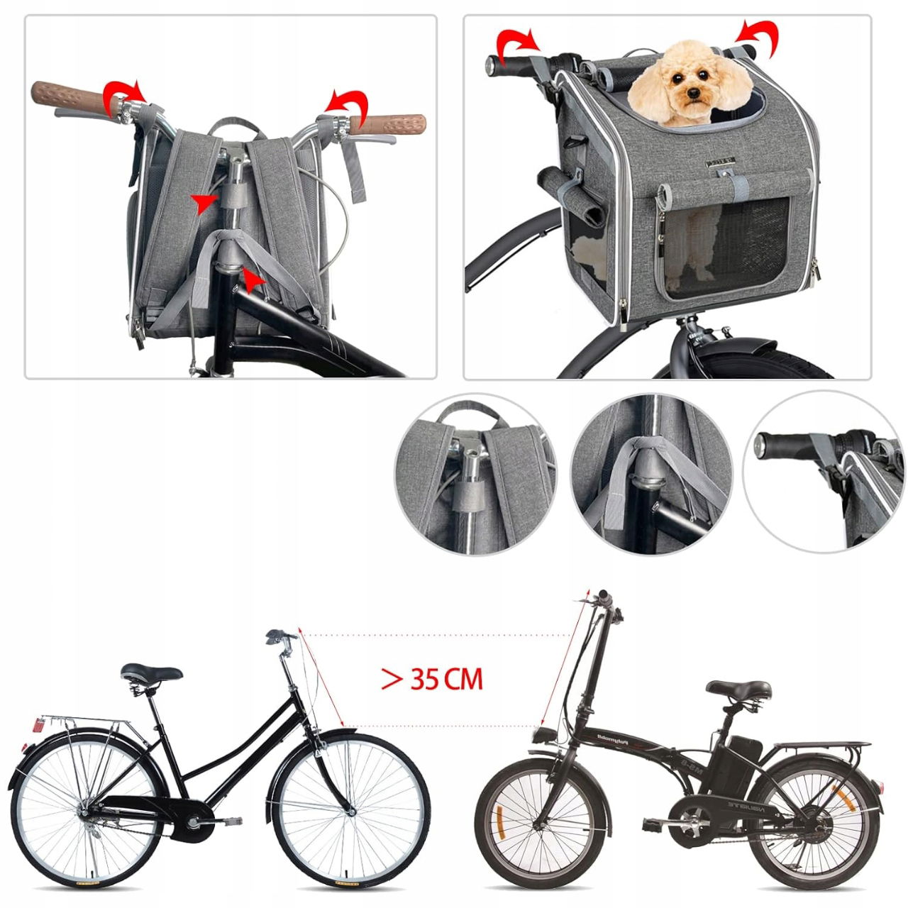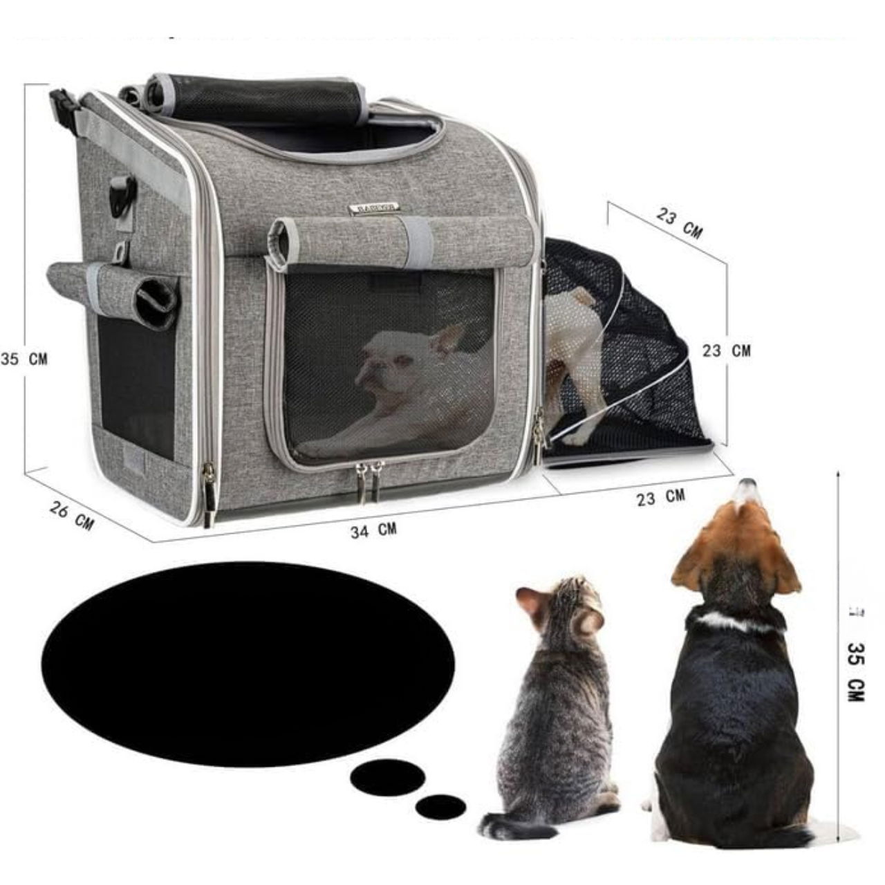 Wybierz wygodę i bezpieczeństwo dla swojego pupila z rozszerzalnym koszem rowerowym BABEYER! Ten wszechstronny kosz i plecak w jednym to idealne rozwiązanie dla właścicieli małych psów i szczeniaków, którzy chcą zabierać swoich czworonożnych przyjaciół na wspólne wyprawy rowerowe. Dzięki miękkiej, wyściełanej konstrukcji, siatkowym okienkom zapewniającym doskonałą wentylację oraz 4 drzwiczkom umożliwiającym łatwy dostęp, Twój pupil może podróżować komfortowo i bez stresu. Kosz może być używany nie tylko na rowerze, ale także jako plecak, torba transportowa lub przenośne legowisko – idealny w podróży, w samochodzie lub na spacerze.
