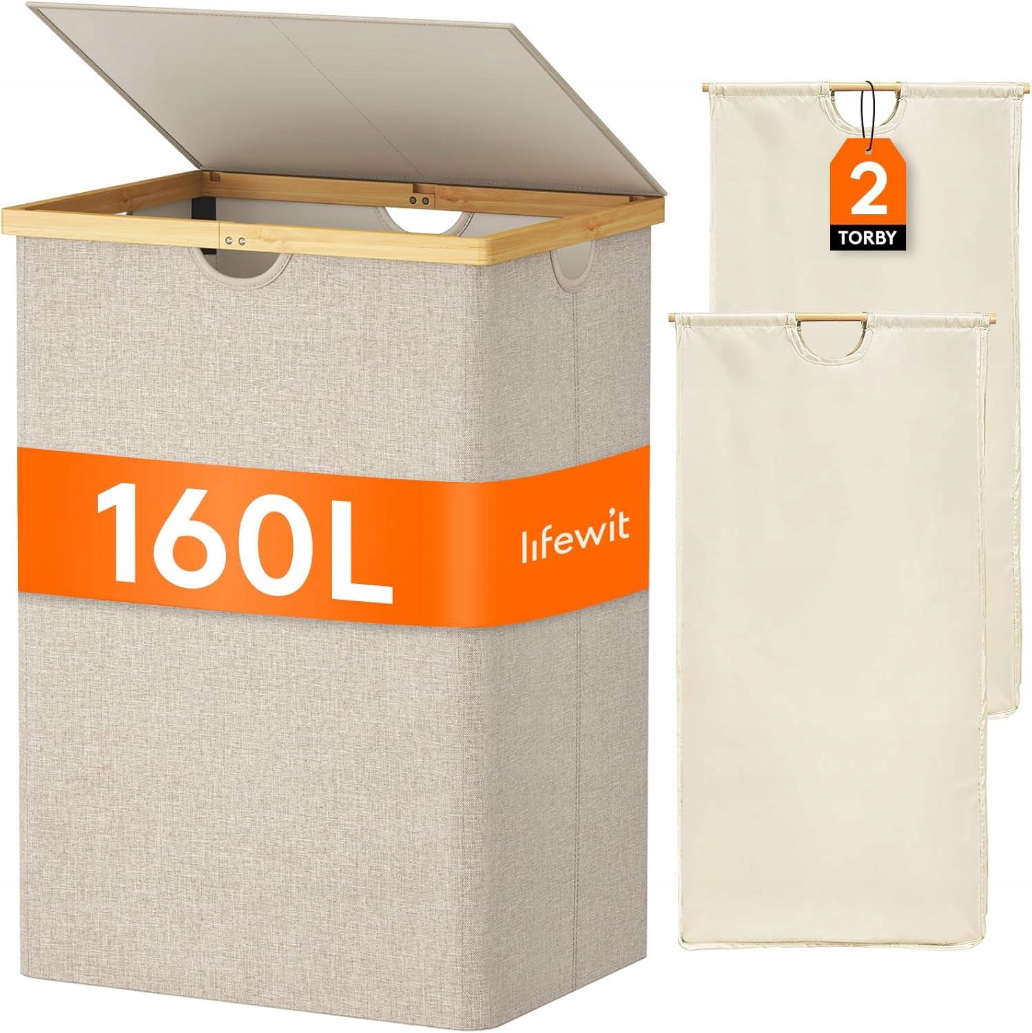 Kosz wolnostojący na pranie Lifewit 160l beżowy