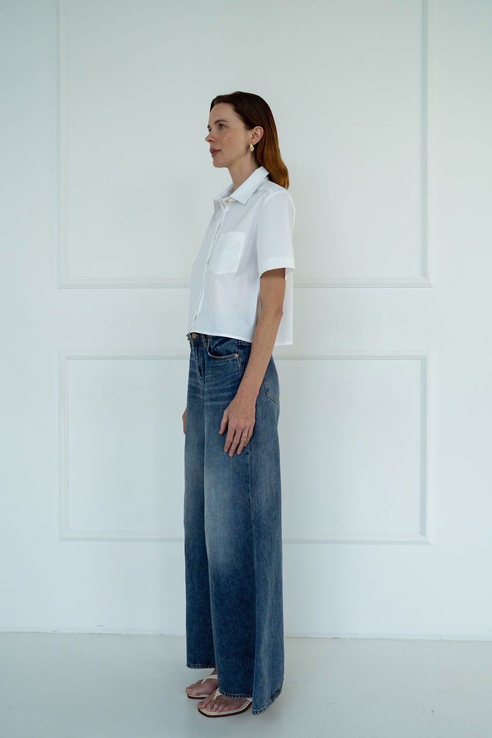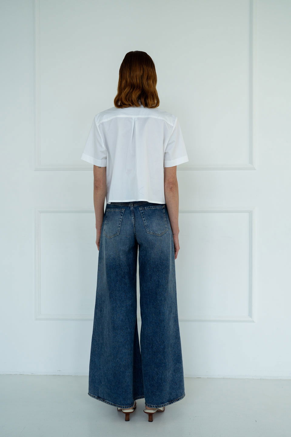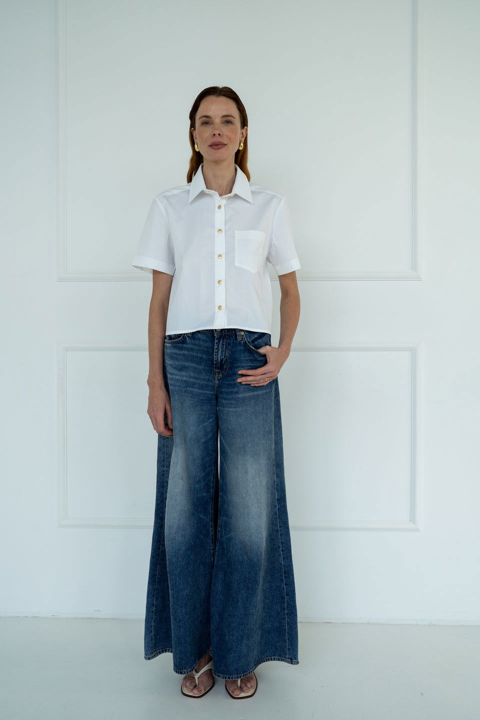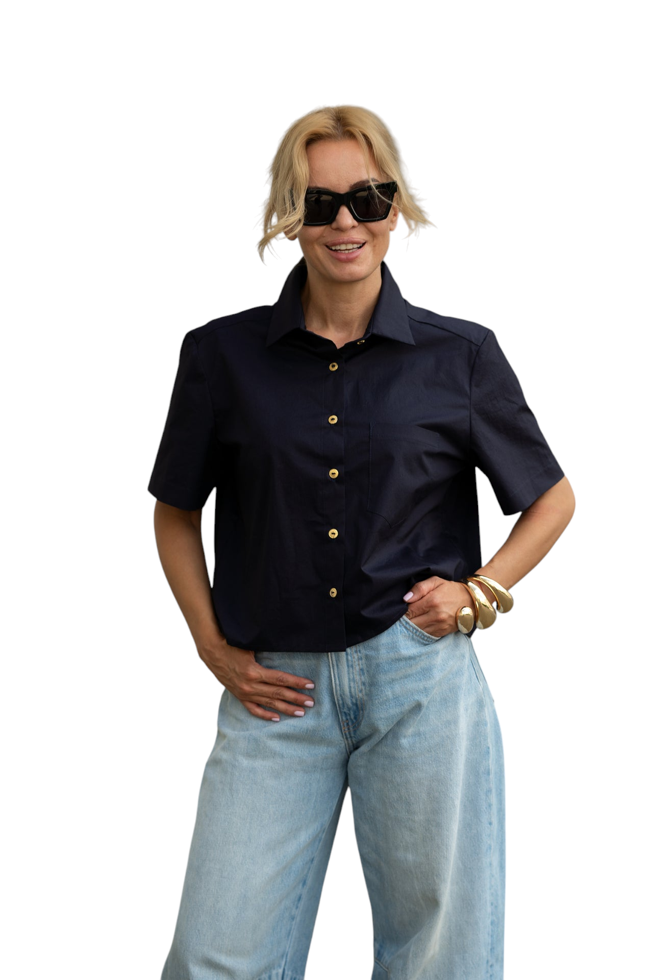 .Koszula damska Edyta o krótkim, pudełkowym kroju. Wykonana z gładkiej, bawełnianej tkaniny.