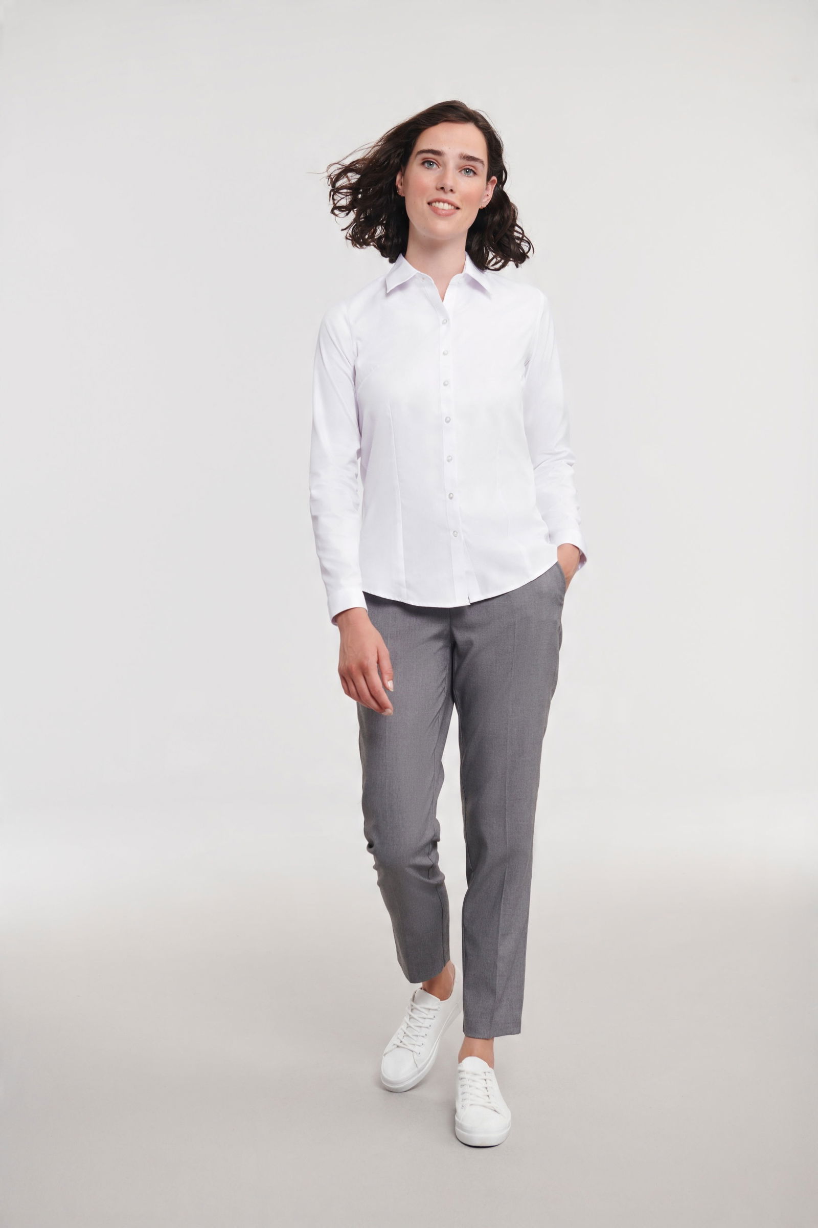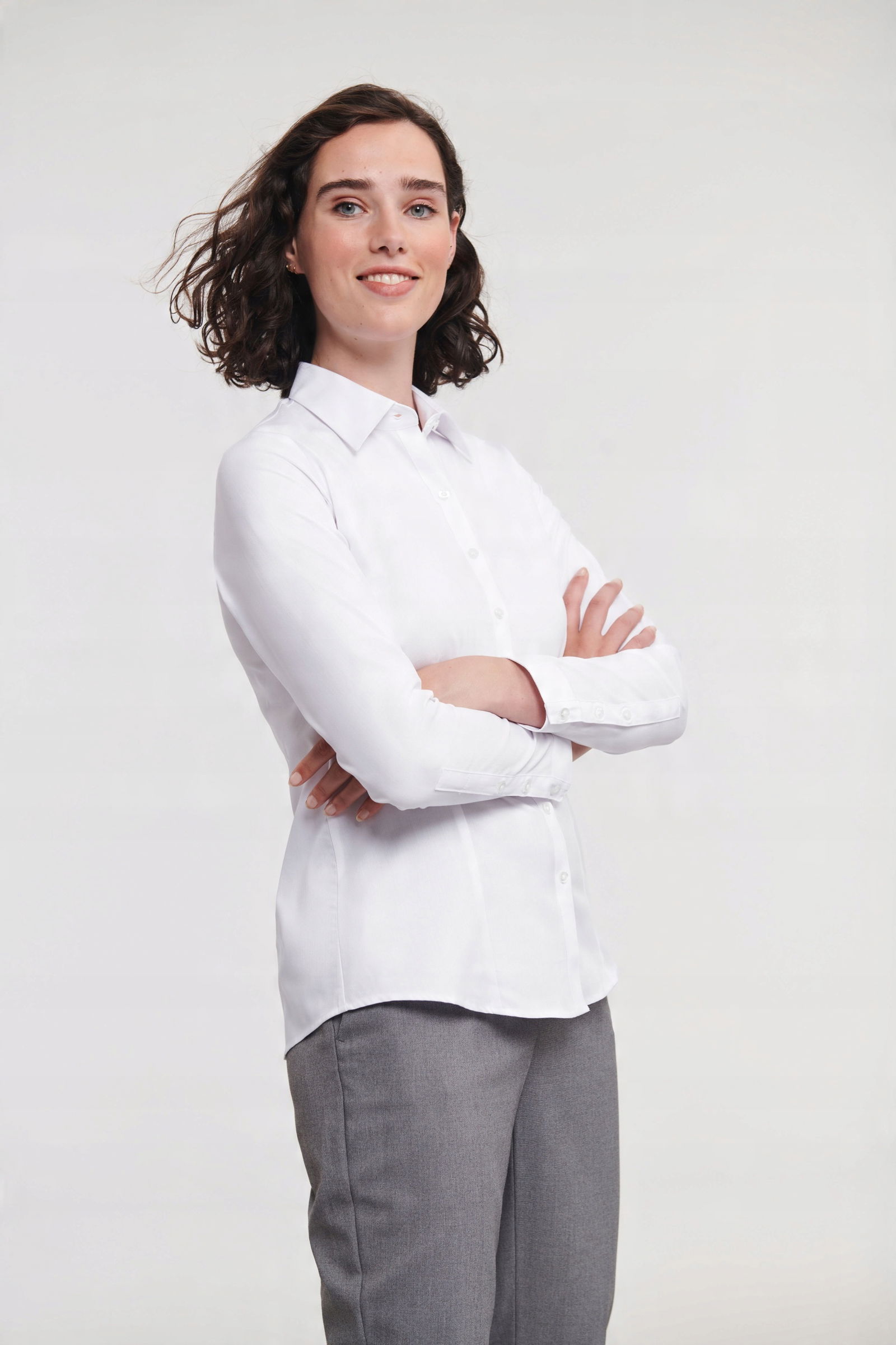 Koszula damska z długim rękawem w jodełkę Russell to doskonały wybór dla kobiet poszukujących zarówno elegancji, jak i wygody. Wykonana z wysokiej jakości materiału składającego się z 84% bawełny i 16% poliestru, koszula ta prezentuje się niezwykle stylowo dzięki wzorowi w drobną jodełkę.