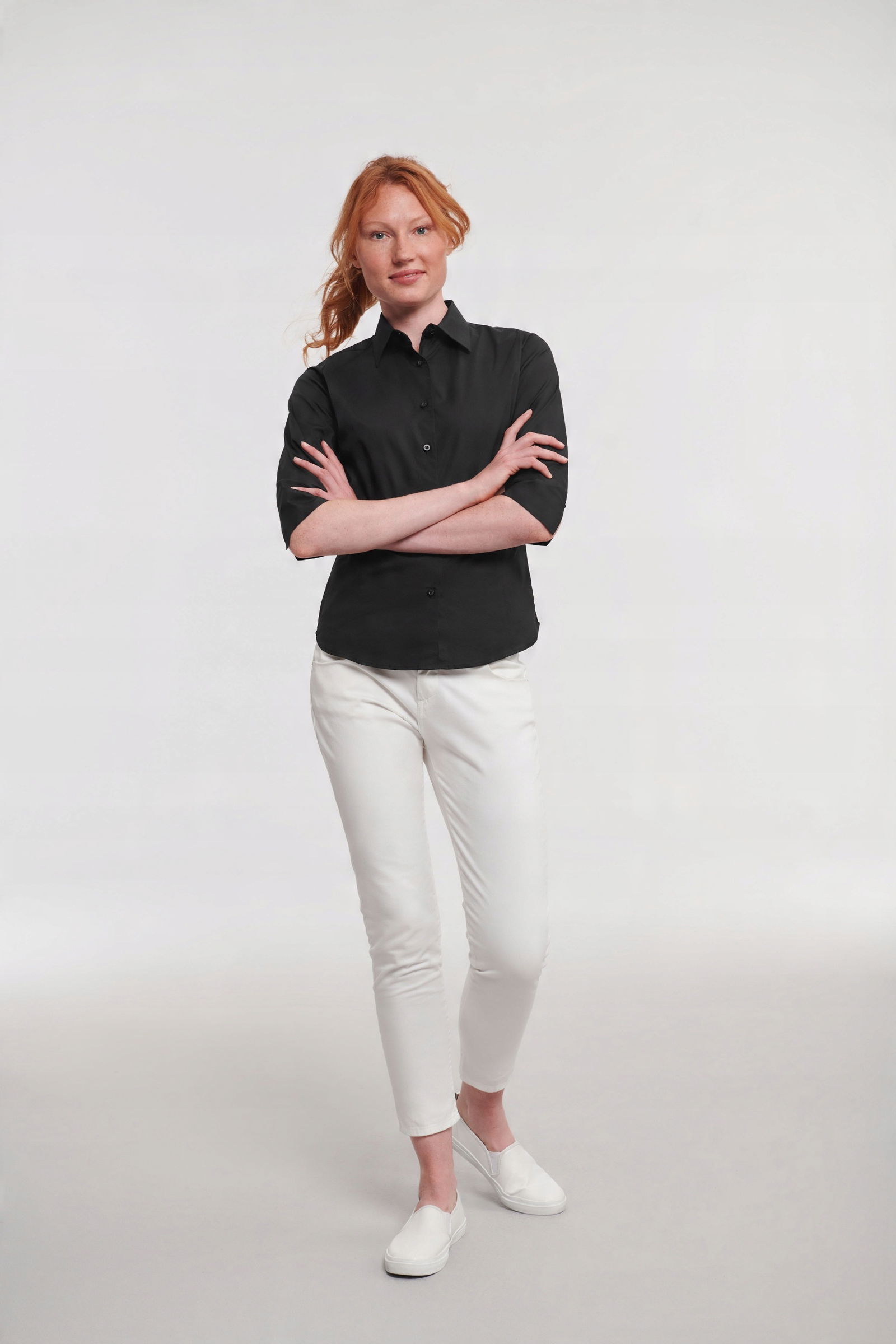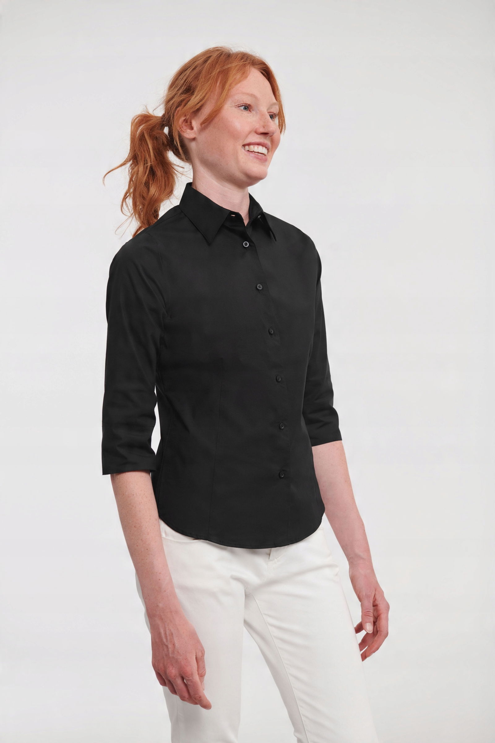 Koszula damska z rękawami 3/4 Russell to doskonały wybór dla kobiet pragnących czuć się elegancko i wygodnie w każdej sytuacji. Niezależnie od tego, czy to spotkanie biznesowe, czy nieformalna kolacja, ta koszula zawsze zapewni Ci wyjątkowy wygląd i komfort.
