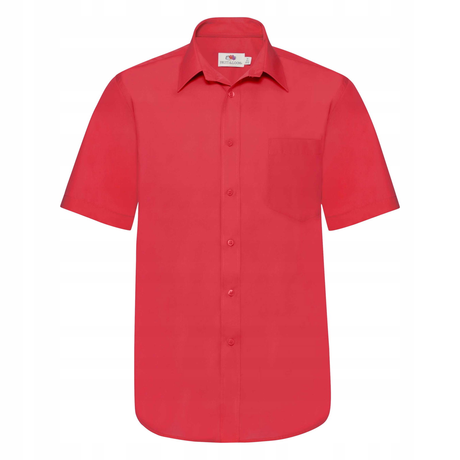 Koszula męska z krótkim rękawem z popeliny Czerwony r. S