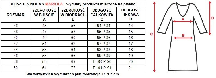 Wyjątkowa koszula nocna Mariola z asymetrycznym tyłem to idealny wybór dla Pań lubiących kreatywne i nowoczesne rozwiązania. Koszula nocna Mariola została wykonana z innowacyjnego materiału jakim jest jedwab wiskozowy. Koszula dostępna jest w kilku modnych kolorach oraz rozmiarze od 36 do 50.