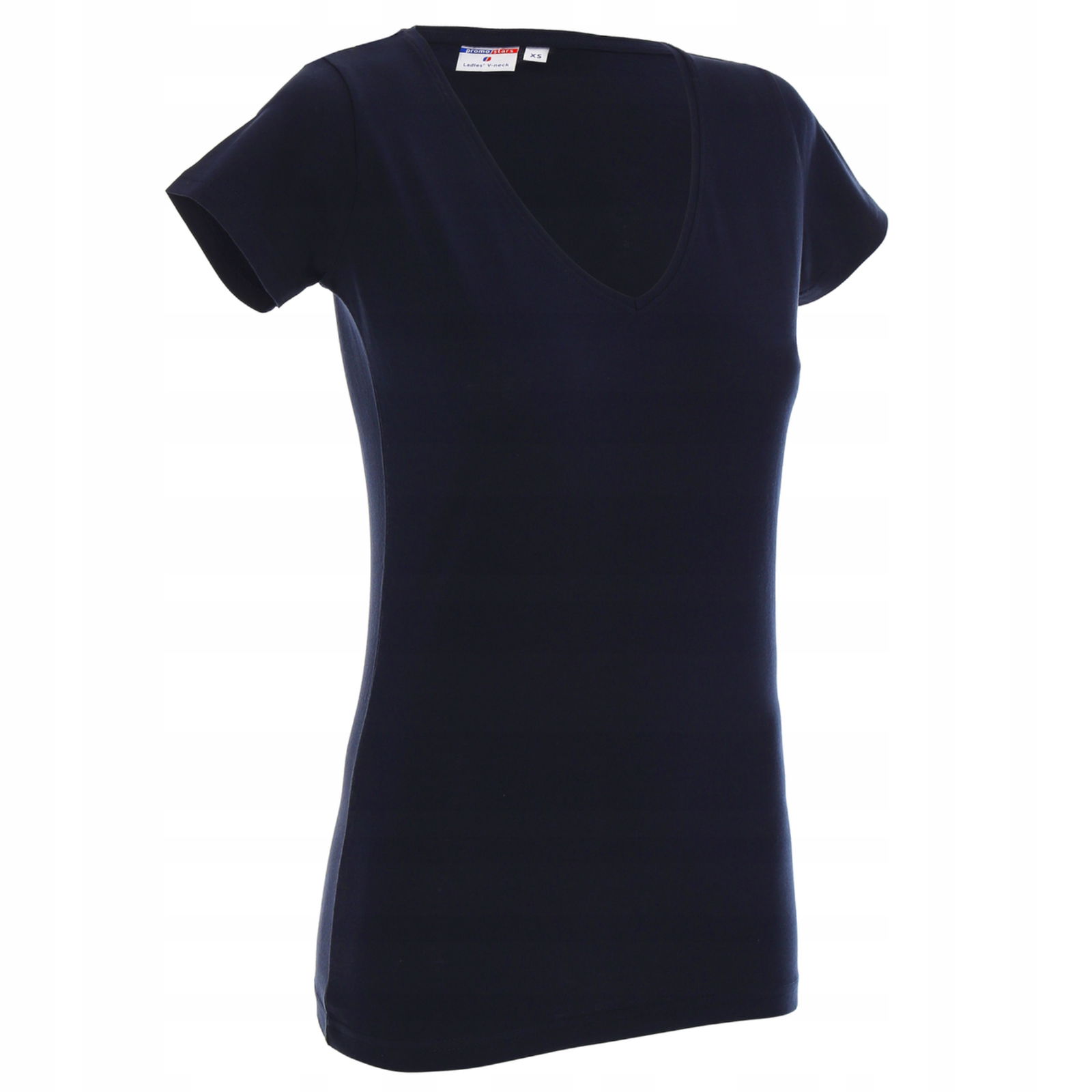 Koszulka damska bawełniana v-neck w serek z krótkim rękawem granatowy S
