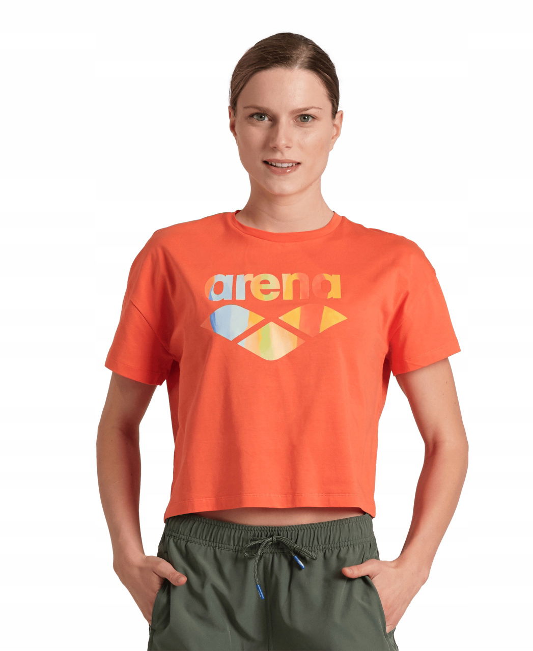 Koszulka damska top bawełniany sportowy okrągły dekolt Arena Crop Top S
