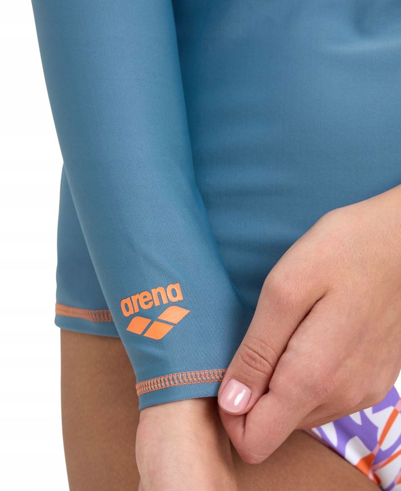 Damska koszulka z długim rękawem Arena Rash Vest w kolorze Stone Grey to idealny wybór dla aktywnych kobiet ceniących sobie wygodę, funkcjonalność i nowoczesny design. Koszulka zapewnia suchość i komfort nawet po kontakcie z wodą. Elastyczna tkanina podkreśla sylwetkę, nie krępując ruchów. Stworzona z myślą o sportach wodnych, plażowaniu i intensywnym treningu na świeżym powietrzu.