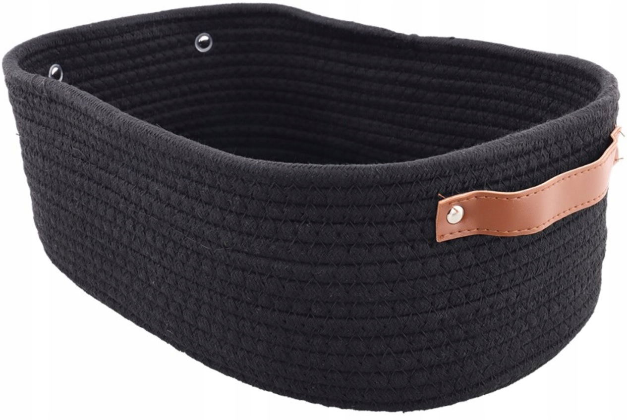 Kosz Koszyk Pleciony Tkanina DEKORACJA CZARNY DUŻY