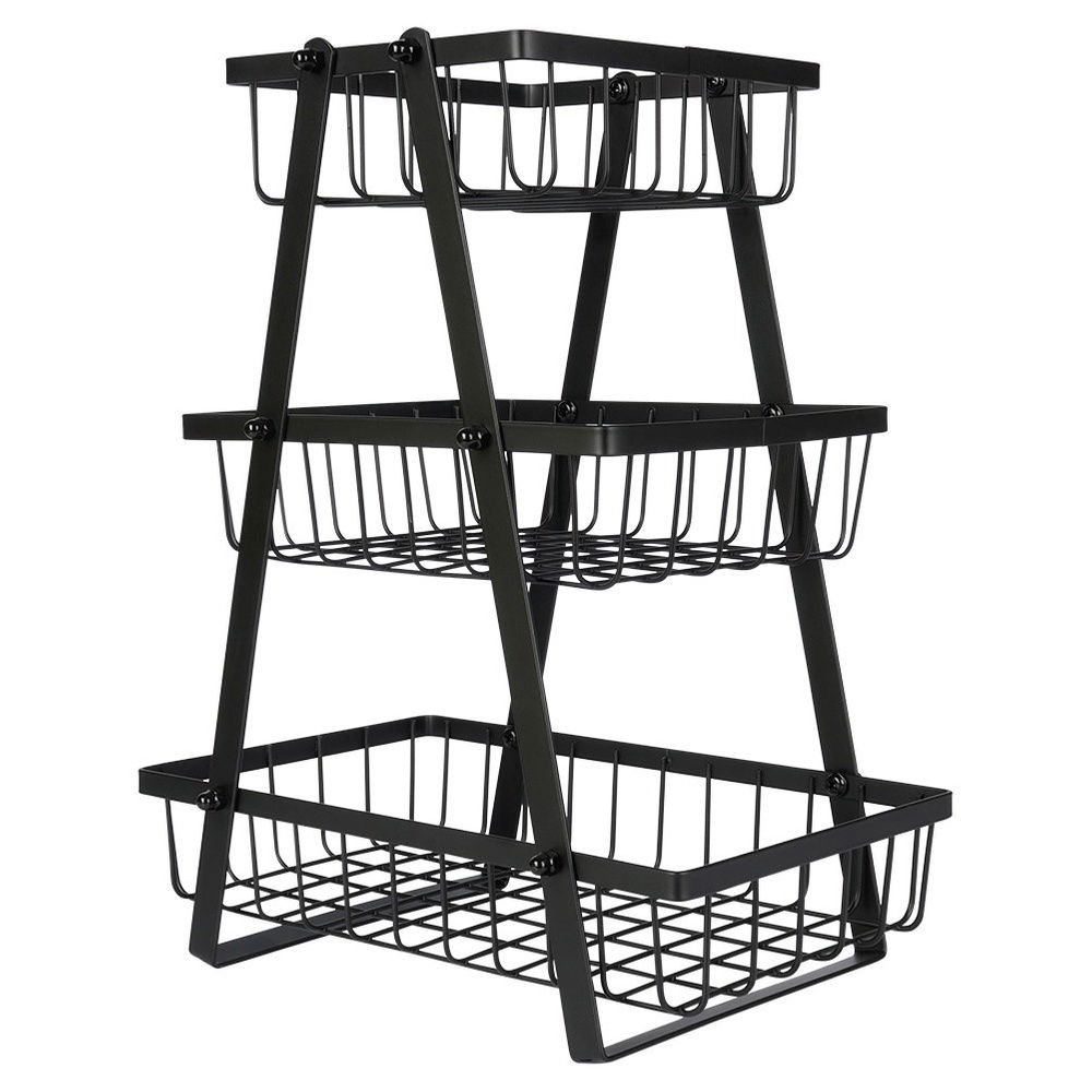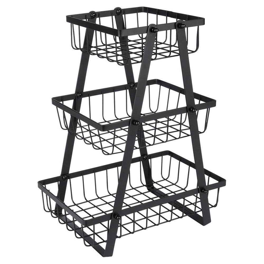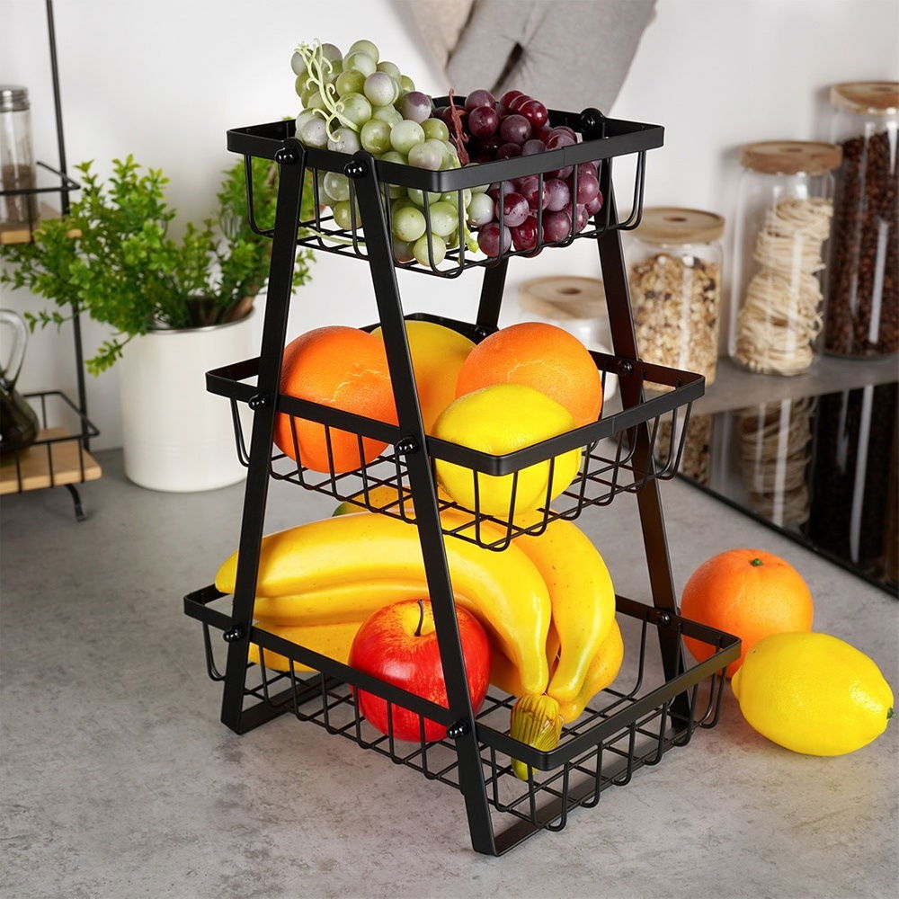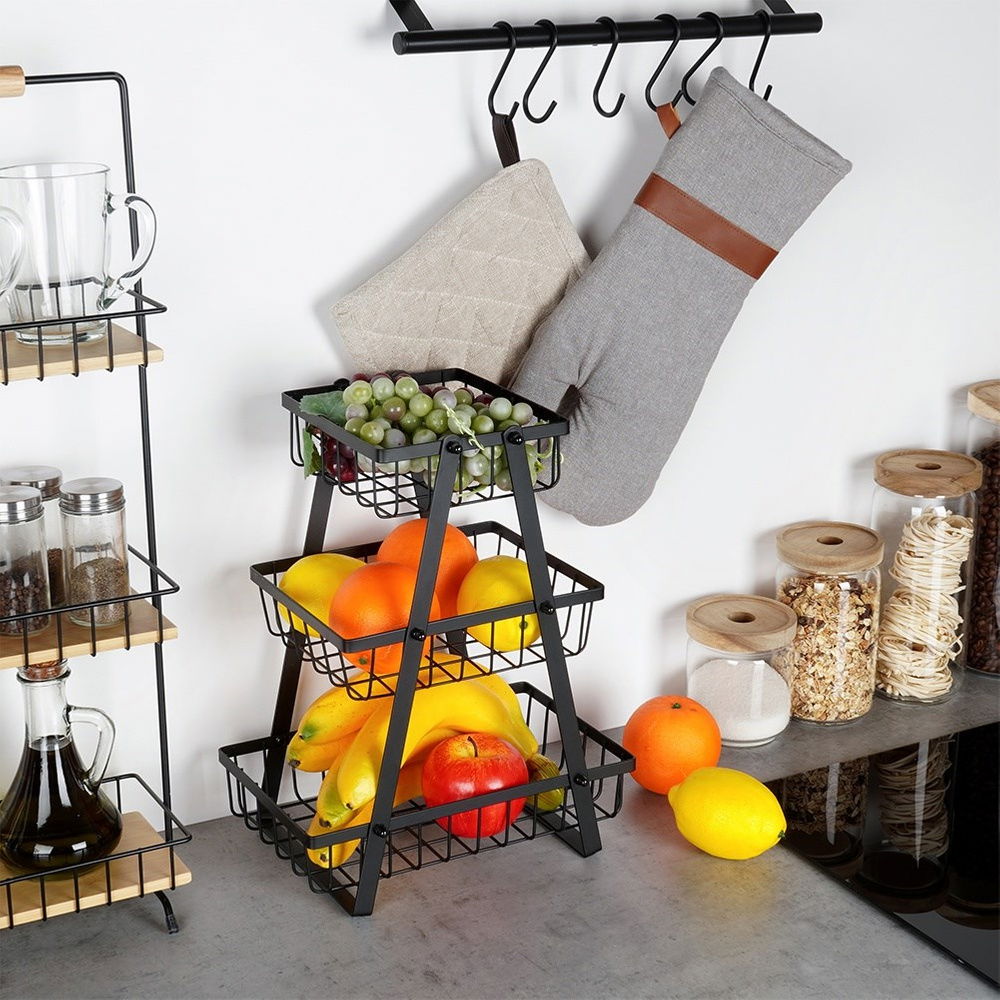 Koszyk Dwupoziomowy 2 Piętrowy na Owoce Warzywa Metalowy Czarny Patera Kosz